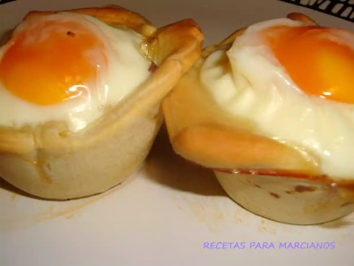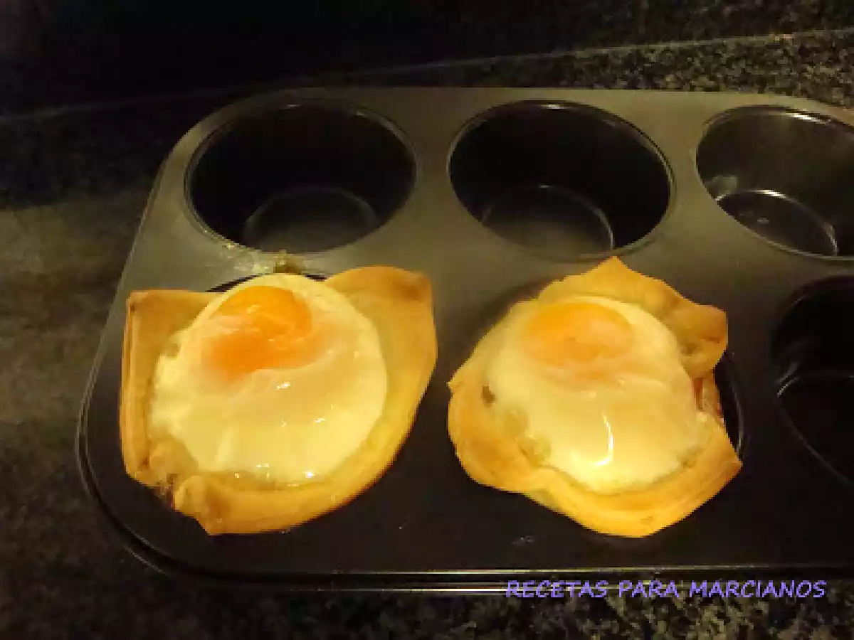 Huevos al horno AnteriorSiguiente PlatoFácil35 min646 Kcal Enviar esta receta a un amigo Imprimir esta página Preguntar al autor Publicar la foto de esta receta Ingredientes 2 1 plaquita de hojaldre o de masa base para pizzas (las venden en el super) 1 loncha de queso 1 chorrito de tomate 1 loncha de bacon 1 huevo Costo estimado: 1.6Euros€ (0.8€/porción)