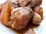 Jamoncitos de pollo a la naranja con patatas panaderas AnteriorSiguiente PlatoFácil45 min1261 Kcal Enviar esta receta a un amigo Imprimir esta página Preguntar al autor Publicar la foto de esta receta Ingredientes 3 8 jamoncitos de pollo 5 naranjas 4 cucharadas de mantequilla 1/2 puerro 2 cebollas 2 zanahorias 1 pimiento verde 8 dientes de ajo 2 patatas medianas 1/2 vaso de caldo de pollo Aceite de oliva Sal Costo estimado: 11.24Euros€ (3.75€/porción)