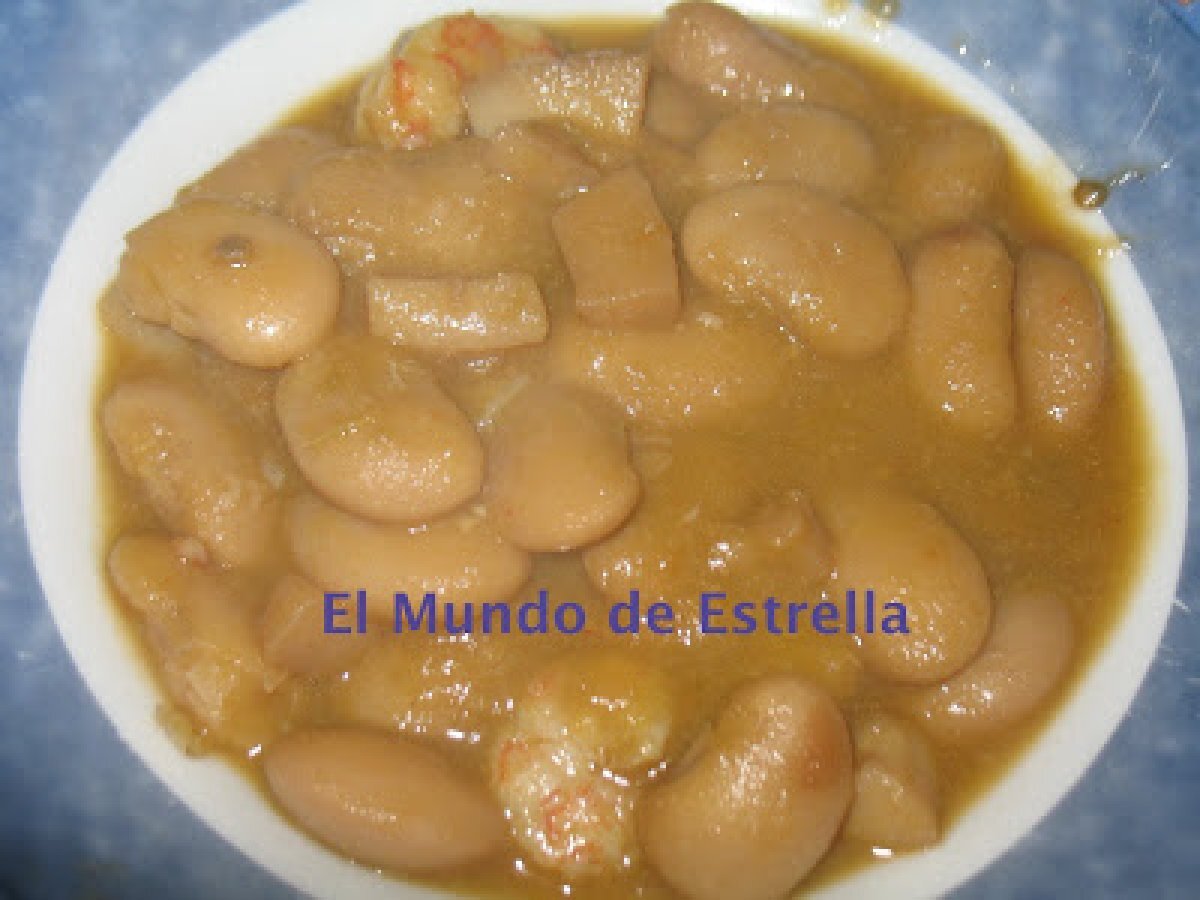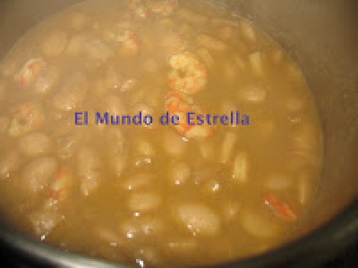 Judias blancas con choco y langostinos AnteriorSiguiente PlatoMedio35 min367 Kcal Enviar esta receta a un amigo Imprimir esta página Preguntar al autor Publicar la foto de esta receta Ingredientes 4 1 paquete pequeño de alubias o judías blancas de tamaño grande 1 buen choco un medio kilo mas o menos de langostinos tomate pimiento cebolla ajo aceite sal brandy o coñac Costo estimado: 18.76Euros€ (4.69€/porción)
