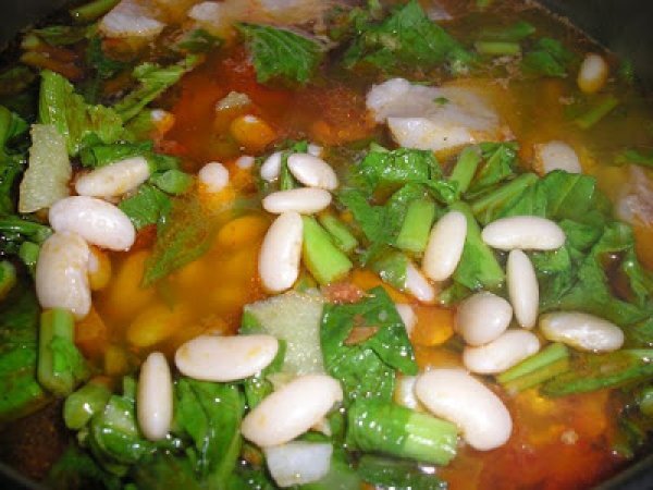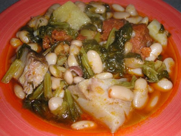 Judías blancas con toques gallegos vota ahora AnteriorSiguiente PlatoFácil35 min Enviar esta receta a un amigo Imprimir esta página Preguntar al autor Publicar la foto de esta receta Un plato rápido y rico. Ingredientes 2 4 tacitas de café de judías blancas (1/2 kg. aprox.) 1/4 y mitad de Careta de cerdo en trozos 1 cabeza de ajos 1 cebolla 1 patata 1/2 de morcilla de calabaza 1 pastilla de estarlux 1 manojo de Grelos 1 hoja de laurel un buen chorro de aceite de oliva (en crudo)