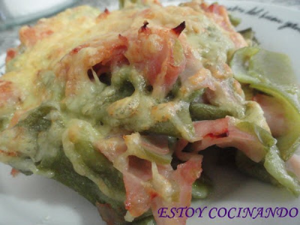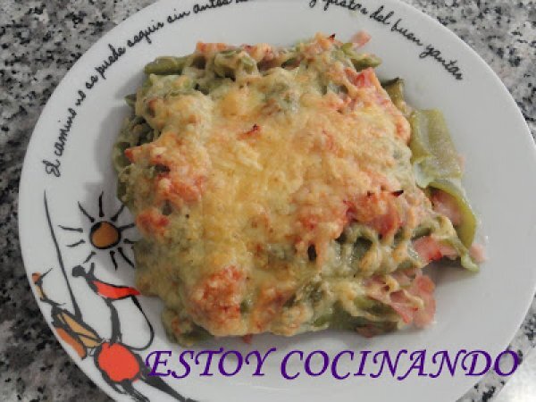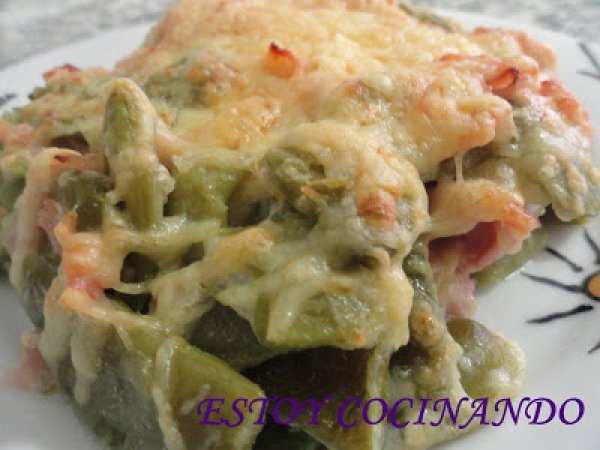 Judías verdes gratinadas AnteriorSiguiente PlatoFácil20 min342 Kcal Enviar esta receta a un amigo Imprimir esta página Preguntar al autor Publicar la foto de esta receta Un plato muy rico y muy ligero!!! Ingredientes 2 250 g de judia verdes 100 g de jamón d eyork 50 g de queso enmental rallado 1 vaso de leche desnatada aceite de oliva sal Costo estimado: 4.82Euros€ (2.41€/porción)