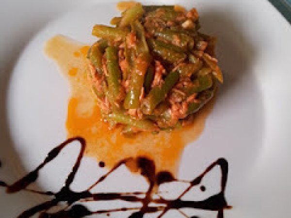 Judías verdes salteadas con atún PlatoFácil25 min Enviar esta receta a un amigo Imprimir esta página Preguntar al autor Publicar la foto de esta receta Ingredientes 4 1 Bolsa de judías verdes congeladas de unos 750 gr 2 ajos 1 pastilla de caldo de verduras 4 cucharadas de tomate frito 250 gr de atún en aceite Aceite