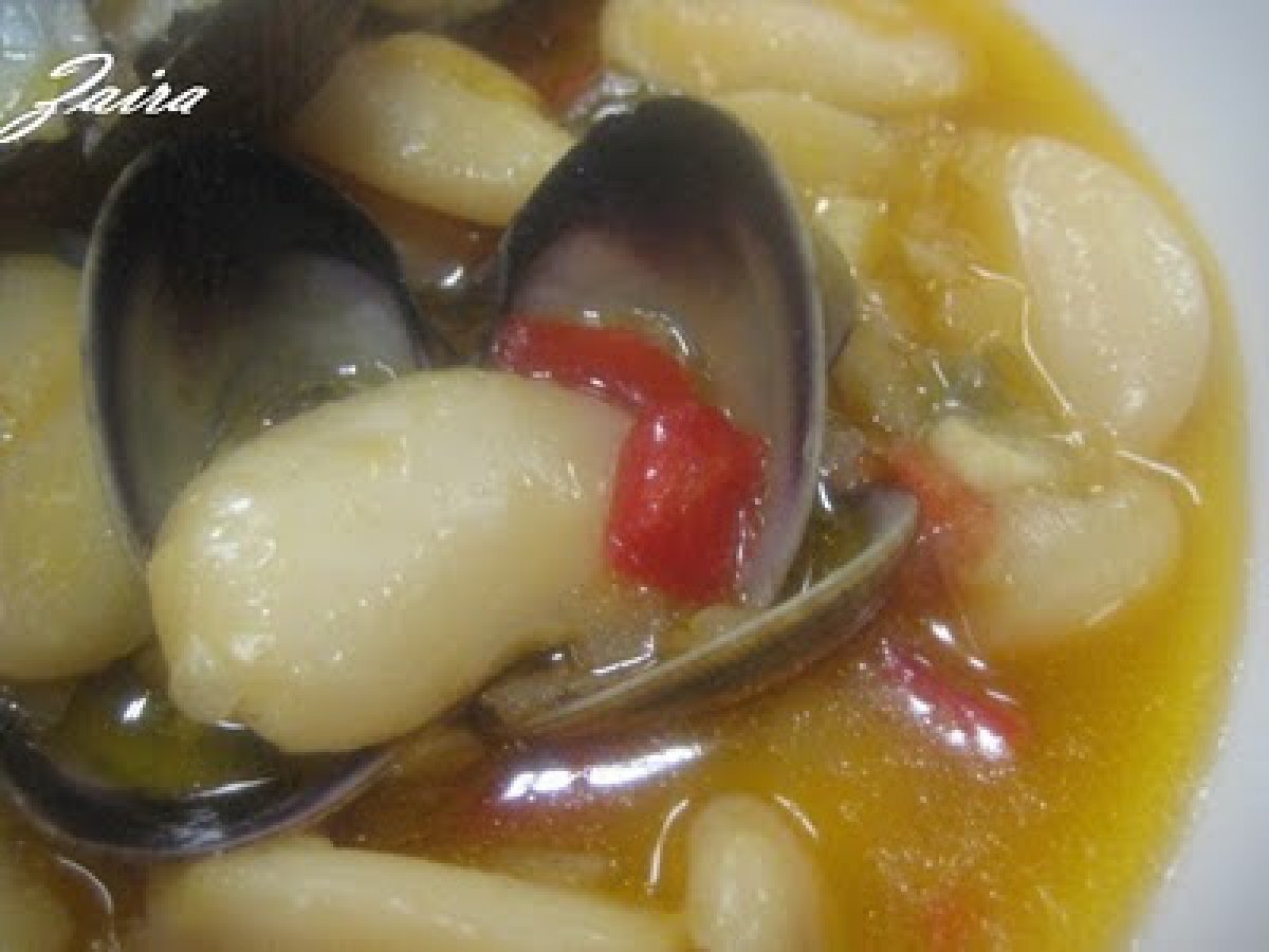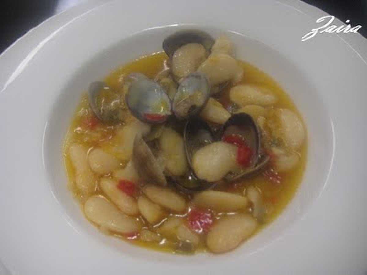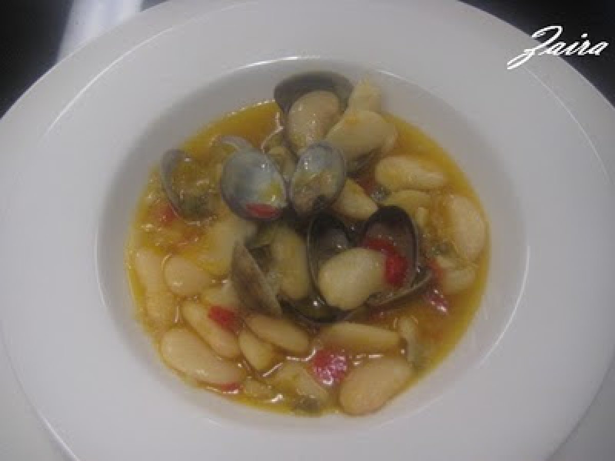 Judíones de la granja con almejas AnteriorSiguiente PlatoFácil1 hora Enviar esta receta a un amigo Imprimir esta página Preguntar al autor Publicar la foto de esta receta Ingredientes 6 600 g de judíones cocidos 400 g de almejas 1 pimiento rojo y 1 pimiento verde cortados en daditos 1 cebolla 1 dl de vino blanco Fumet de pescado 1 cucharada rasa de harina 2 dientes de ajo picados Aceite de oliva Sal