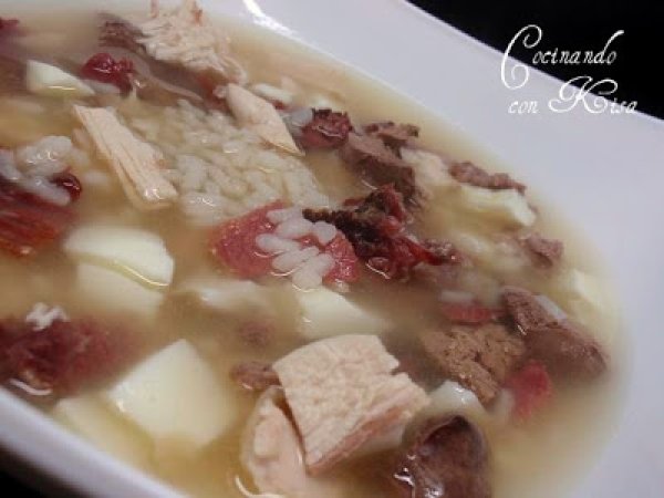 La sopa de la abuela (fussioncook) AnteriorSiguiente PlatoFácil45 min Enviar esta receta a un amigo Imprimir esta página Preguntar al autor Publicar la foto de esta receta Ingredientes 3 200 g de morcillo 200 g de jamón serrano un taco 200 g de higaditos de pollo 1 cuarto de gallina la pechuga 1 cuarto de pollo 2 pastillas de caldo 3 huevos 4 y ½ litros de agua Sal