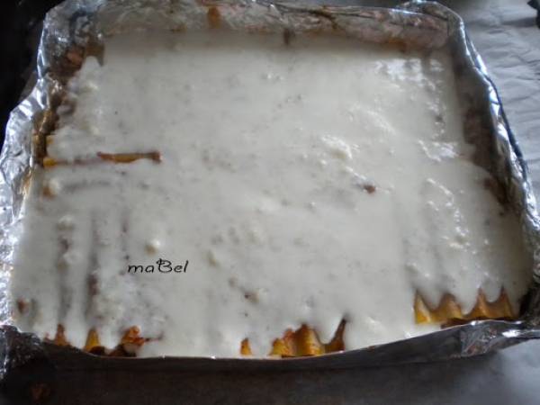 Lasagna rápida de carne con placas precocidas AnteriorSiguiente PlatoFácil1 día 6 h 30 m Enviar esta receta a un amigo Imprimir esta página Preguntar al autor Publicar la foto de esta receta Las hago como las hacía en Argentina, todo de una. Ingredientes 8 1 cebolla 2 dientes de ajo 750 gr carne picada 1 taza leche 1 cda de pimenton dulce un poco de comino una hoja de laurel un poco de pimienta orégano 1 lata de pure de tomate