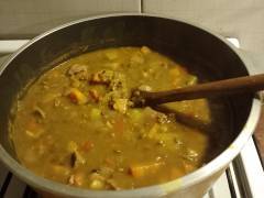 Mezcla bien, cubre, y deja cocinar 25 min a fuego lento (o hasta que las patatas estén cocidas)