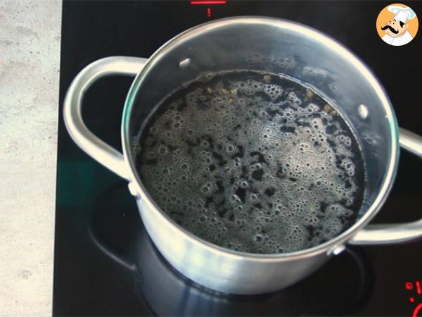 Pon el agua + lentejas en una cacerola. Lleva a ebullición y luego deja cocer a fuego medio 15 min.