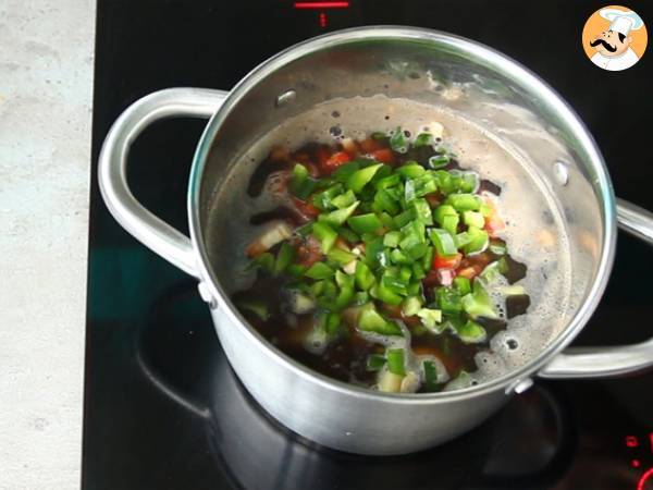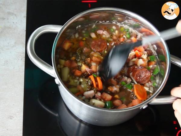 Muy sencilla y sabrosa . la hice sin el chorizo colorado y e agrgue dados de carne y un poco de pure de zapallo ingles o cabutia como se llama aca. queda dentro de las preferidas