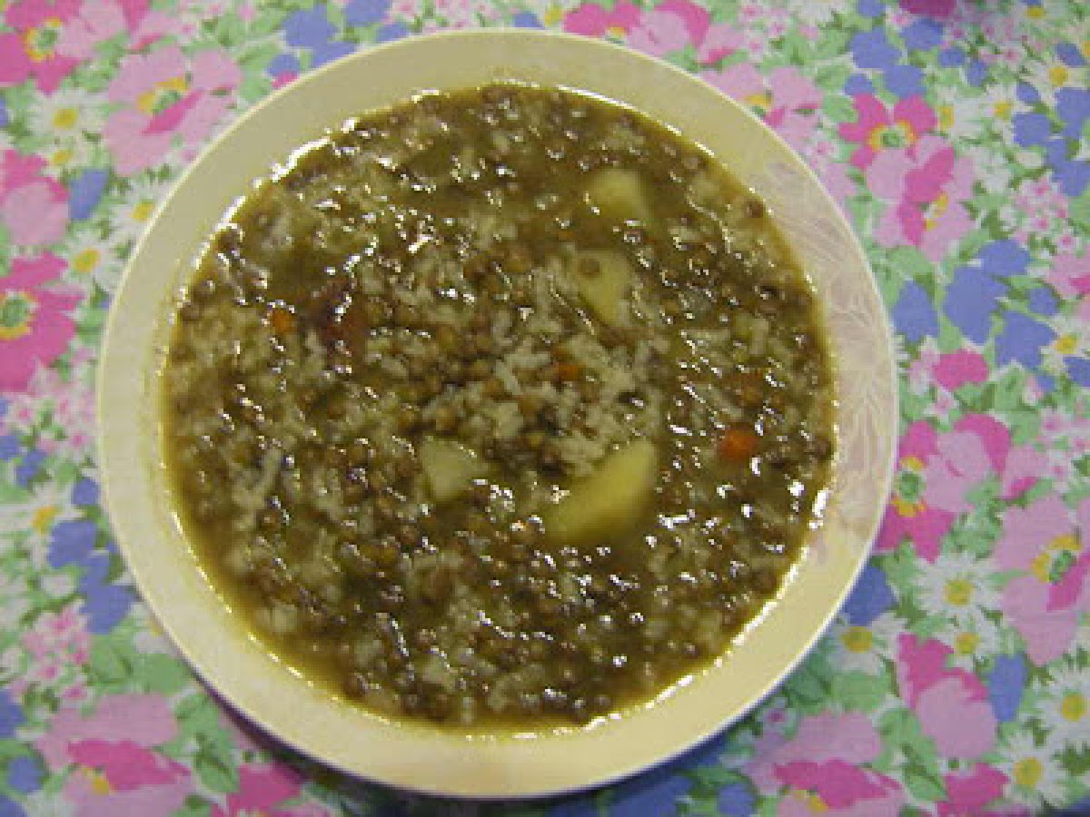 Lentejas con patata y arroz PlatoFácil1 hora1278 Kcal Enviar esta receta a un amigo Imprimir esta página Preguntar al autor Publicar la foto de esta receta Ingredientes 2 300 g lentejas pardinas 150 g arroz 3 patatas 1 chorizo 1 zanahoria 1 pimiento verde 1 cebolla pequeña 1 diente de ajo aceite y sal agua hasta cubrir ( y si necesita más ir añadiendo) Costo estimado: 4.22Euros€ (2.11€/porción)