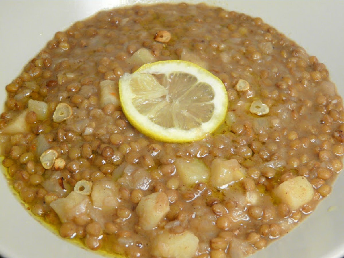 Lentejas especiadas con limón: lentejas a las mil y una noches PlatoFácil45 min Enviar esta receta a un amigo Imprimir esta página Preguntar al autor Publicar la foto de esta receta Ingredientes 4 250 g de lentejas pardinas 2 cebollas 1 limón y medio 1 patata grande 3 dientes de ajo 2 cayenas 1 cucharadita de canela en polvo 1 cucharadita de comino en polvo Aceite de oliva virgen extra sal pimienta