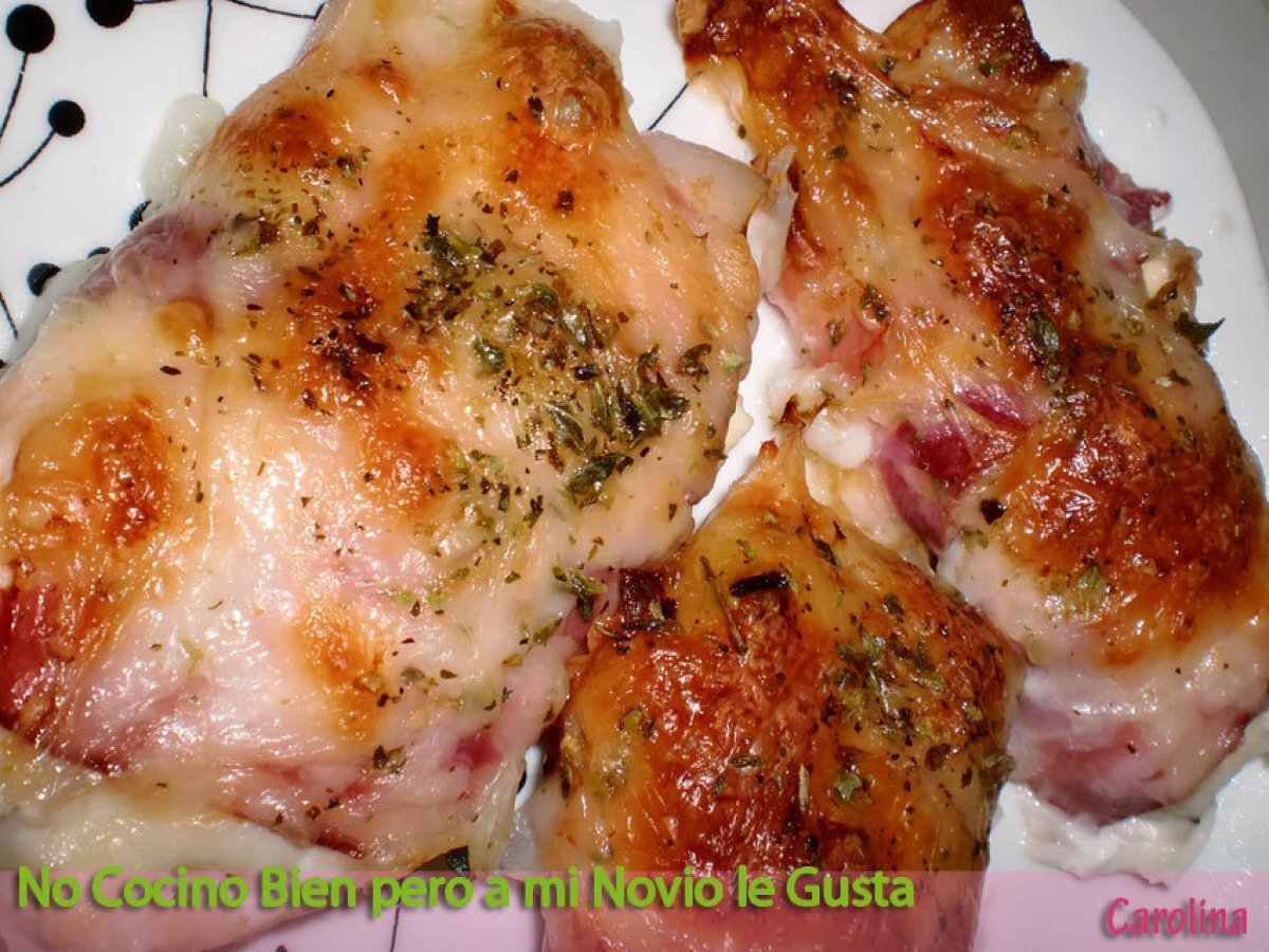 Libritos de pollo al horno PlatoMedio20 min Enviar esta receta a un amigo Imprimir esta página Preguntar al autor Publicar la foto de esta receta Ingredientes 1 *Ingredientes* Filetes de pollo finitos Bacon Tranches Queso para gratinar