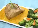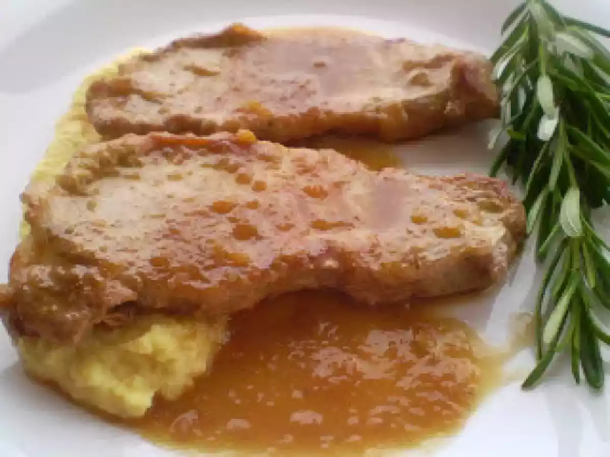 Lomo a la naranja con puré de manzana PlatoFácil45 min937 Kcal Enviar esta receta a un amigo Imprimir esta página Preguntar al autor Publicar la foto de esta receta Ingredientes 2 Filetes de lomo de cerdo 1 Vaso de zumo de naranja 1 Corrito de Cointreau 1/2 Vaso de vino Tinto 1/2 Cebolla 1 Nuez de mantequilla Sal Pimienta 1 Manzana 1 Cucharadita de Mostaza Antigua 1 Chorrito de nata Costo estimado: 4.89Euros€ (2.44€/porción)