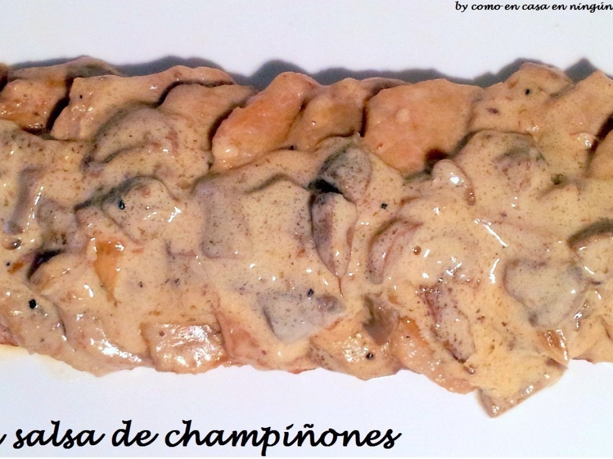 Me encanta el sabor que le da esta salsa al lomo y lo sencilla que es. Si los champiñones son naturales (en el supermercado venden bandejas ya laminados) la salsa resultará deliciosa, aunque con los de lata también queda estupenda.