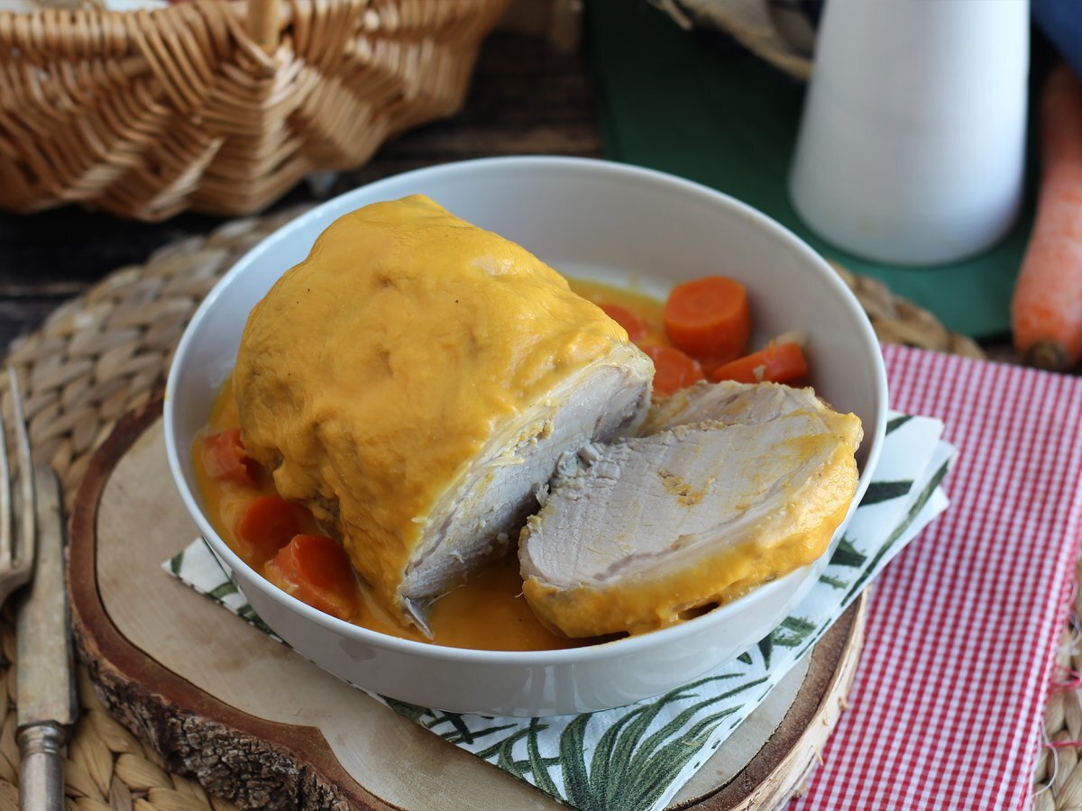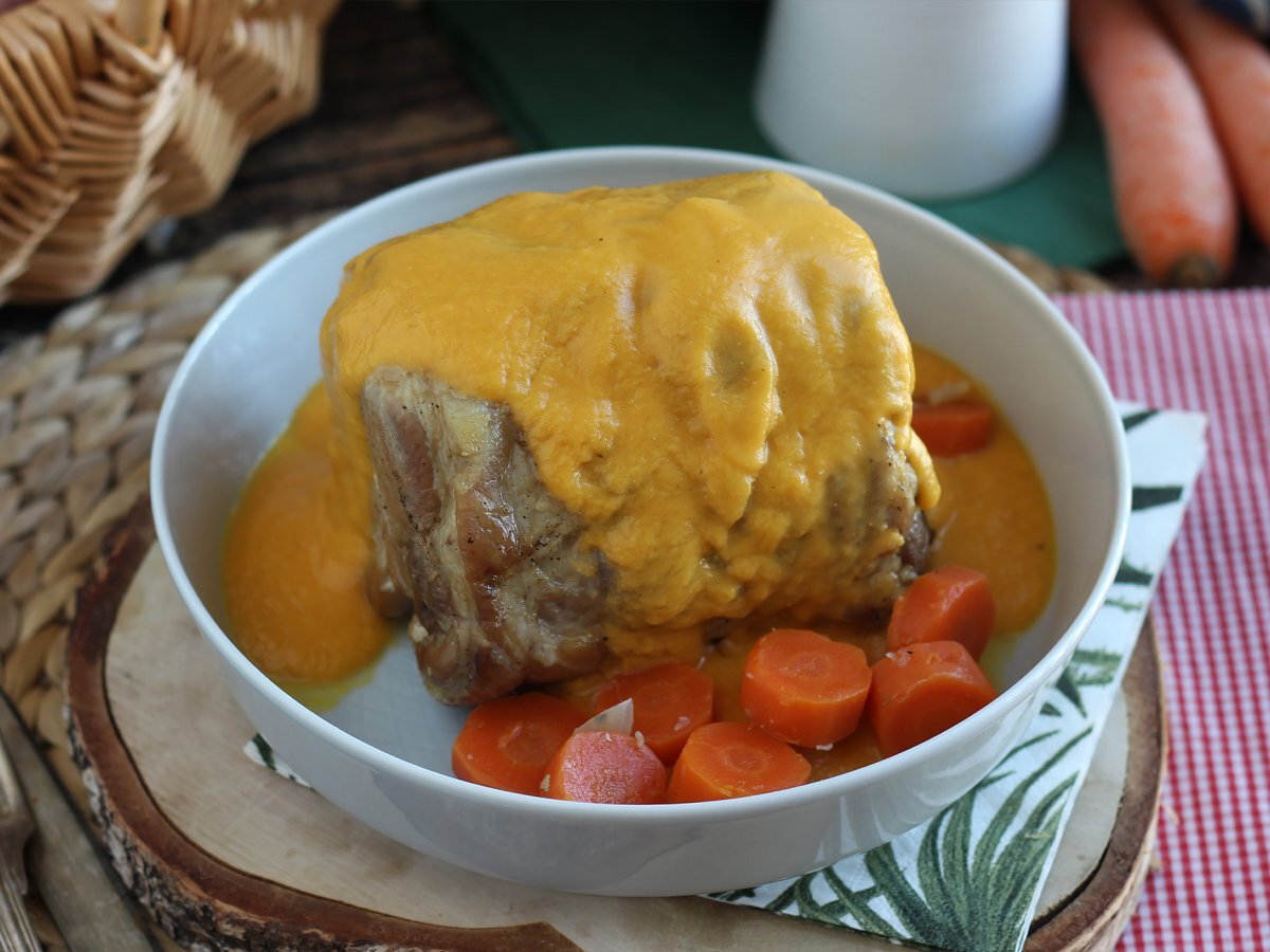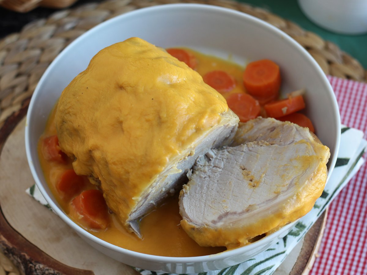 Lomo de cerdo con salsa de cerveza y zanahoria en olla rápida