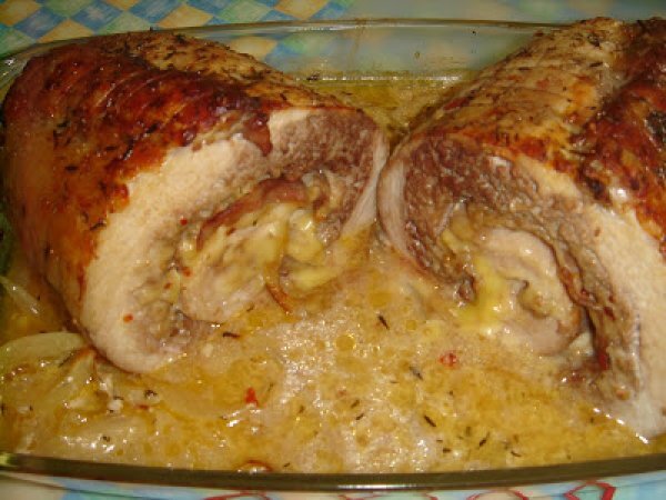 Lomo de cerdo relleno AnteriorSiguiente PlatoFácil1 h 40 m Enviar esta receta a un amigo Imprimir esta página Preguntar al autor Publicar la foto de esta receta Un ingreso original, muy bueno aspecto y muy sabroso Ingredientes 8 1 lomo de cerdo abierto para rellenar 150 g de beicón ahumado en lonchas 150 gde queso en lonchas 150 g de carne de ternera picada 1 cebolla 1 lata de cerveza Sal, pimienta y las hierbas que queramos Costo estimado: 34.53Euros€ (4.32€/porción)