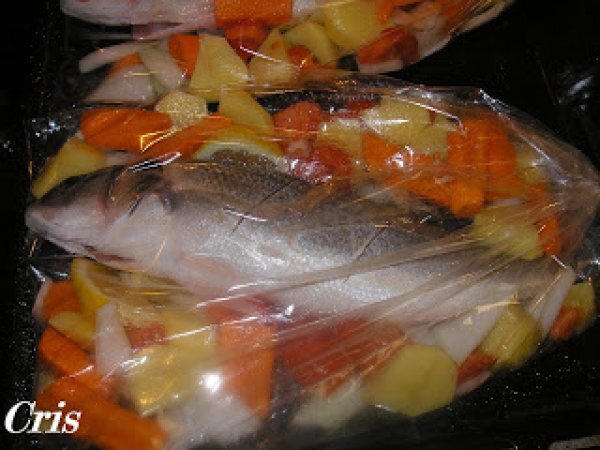 Lubina al horno en bolsa de asar. AnteriorSiguiente PlatoFácil55 min Enviar esta receta a un amigo Imprimir esta página Preguntar al autor Publicar la foto de esta receta ¡ No olvidar no el limón para gusto afrodisíaco! Ingredientes 2 2 lubinas de ración 2 bolsas especiales para hornear 3 patatas 3 zanahorias 2 tomates 1 cebolla grande aceite de oliva sal