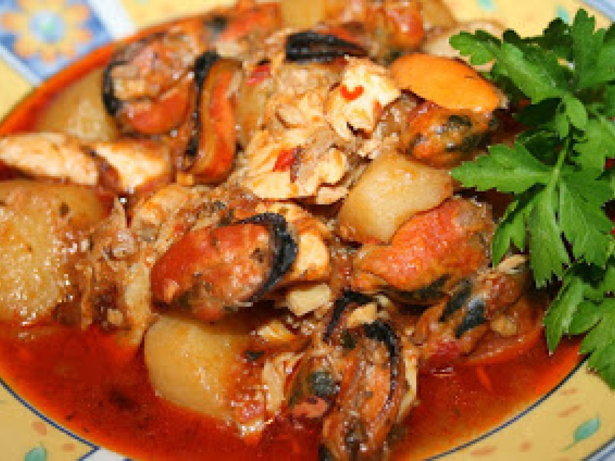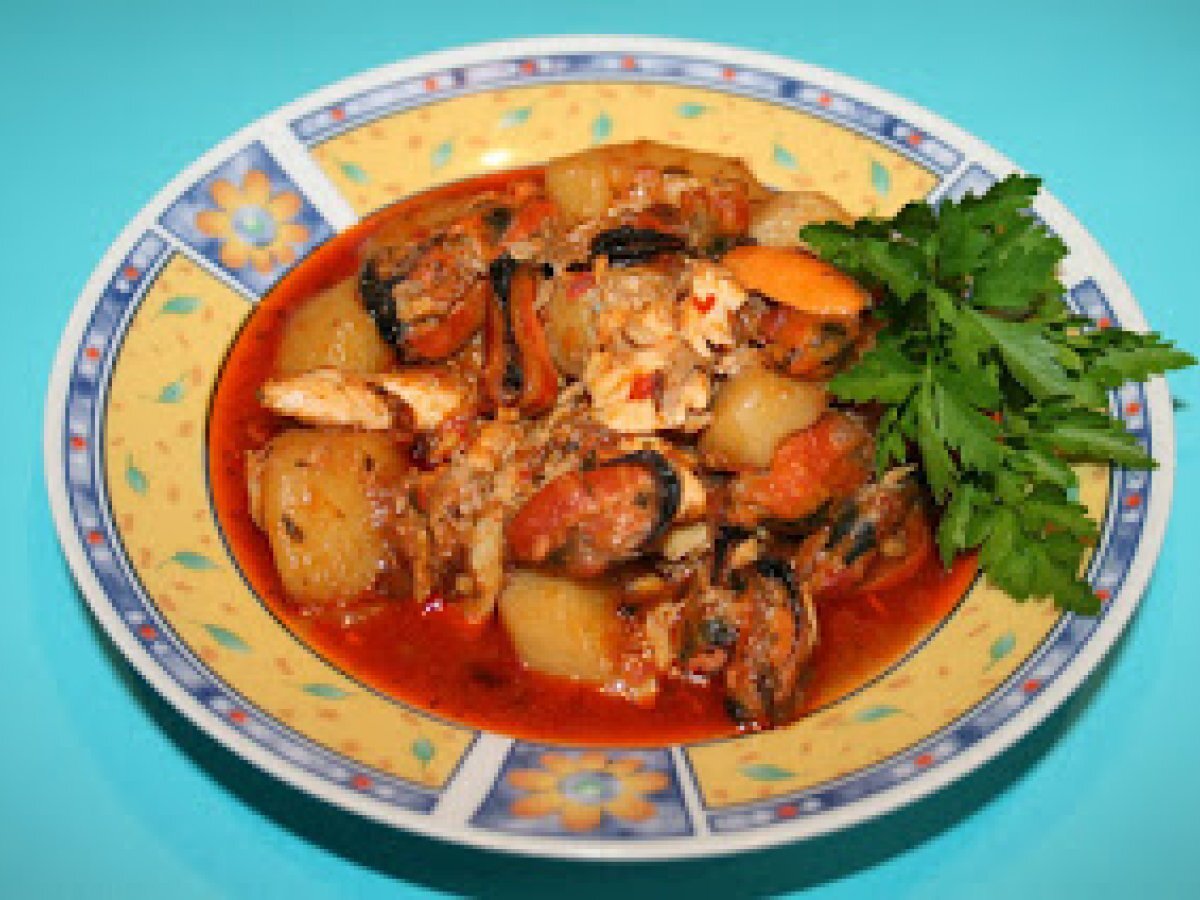 Lubina guisada con patatas vota ahora AnteriorSiguiente PlatoFácil50 min Enviar esta receta a un amigo Imprimir esta página Preguntar al autor Publicar la foto de esta receta Ingredientes 4 1 cebolla pequeña 1 ñora 1 diente de ajo 300 de mejillones 1 lubina 10vinagre 60 aceite 400 de caldo de pescado o agua y sal oregano pimienta 400 de patatas perejil