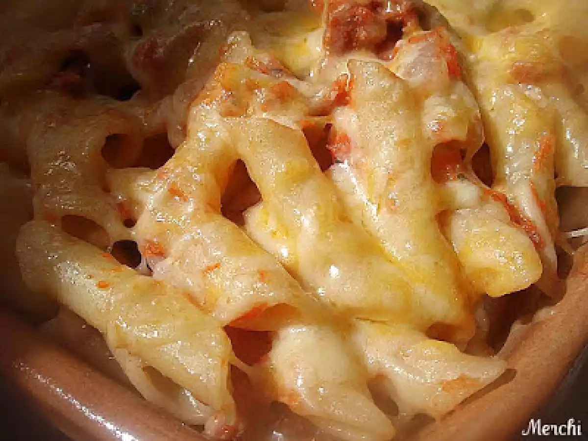 Macarrones gratinados con atùn y verduras AnteriorSiguiente PlatoFácil25 min1092 Kcal Enviar esta receta a un amigo Imprimir esta página Preguntar al autor Publicar la foto de esta receta Ingredientes 2 350 gr de macarrones 2 latas de atún al natural 2 tiras de pimiento rojo 2 tiras de pimiento verde 2 puerros 1 cebolleta 1 penca de apío 4 tomates maduros 1/2 calabacín perejil 2 dientes de ajo tomillo queso para gratinar aceite de oliva 1 cucharadita de pimentón dulce sal Costo estimado: 8.86Euros€ (4.43€/porción)