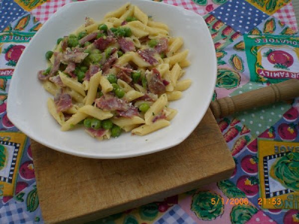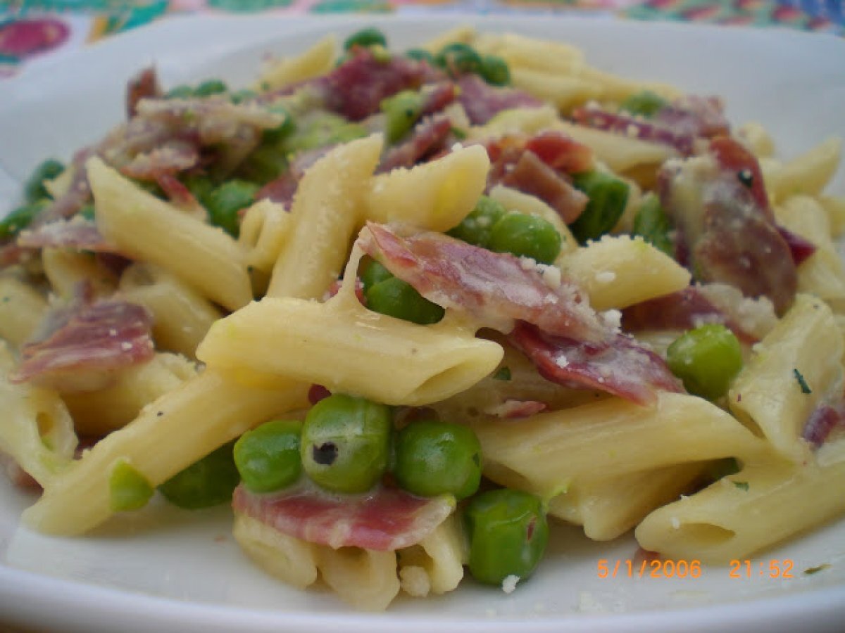 Macarrones rigate barilla a la crema vota ahora AnteriorSiguiente PlatoFácil35 min677 Kcal Enviar esta receta a un amigo Imprimir esta página Preguntar al autor Publicar la foto de esta receta Ingredientes 4 400 g de macarrones rigate barilla 100 g de jamón serrano o cocido cortado en tiritas 3 dl de nata liquida para cocinar 100 g de queso parmesano en polvo 1 lata pequeña de guisantes 50 g de mantequilla una cucharada de perejil sal y pimienta 1 chorro de agua de la cocción de la pasta Costo estimado: 6.46Euros€ (1.62€/porción)