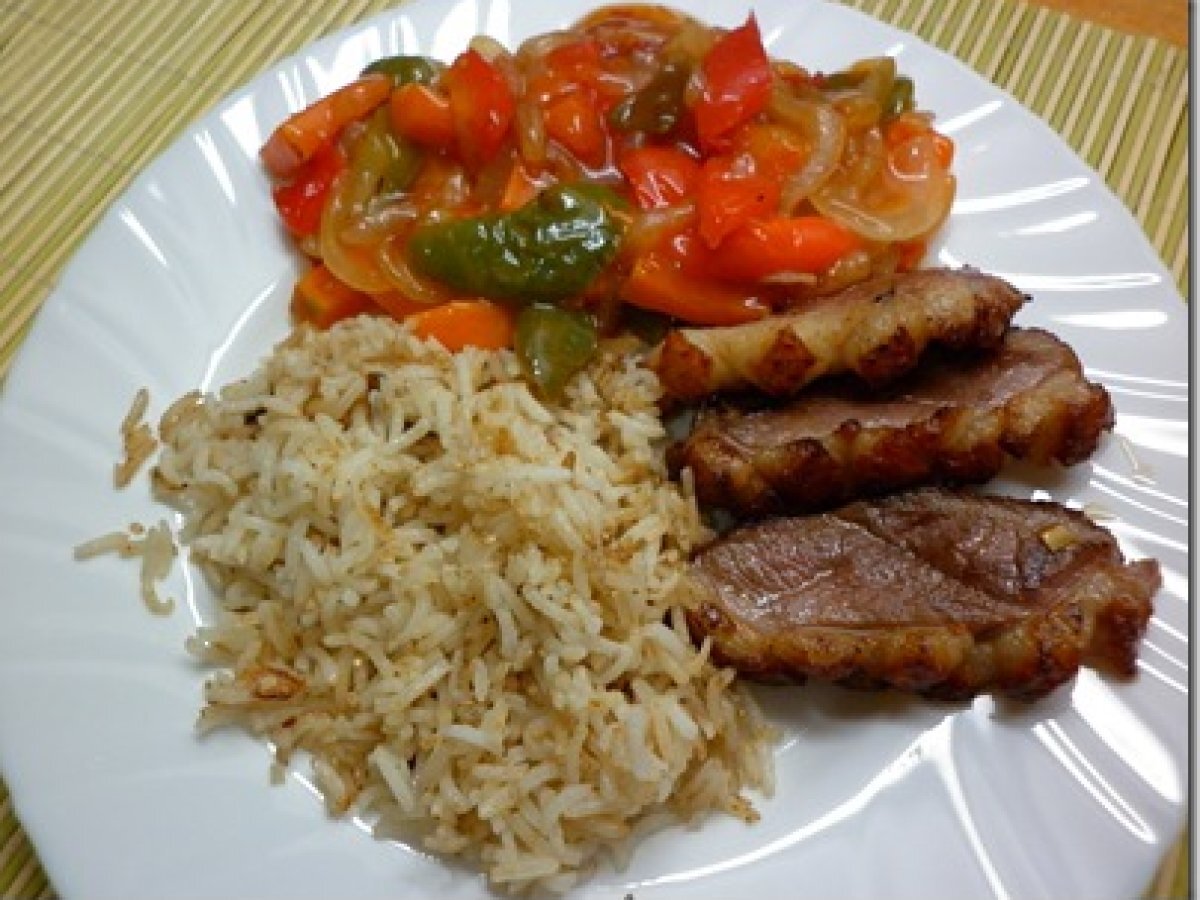 Magret de pato a la oriental PlatoFácil1 h 10 m1137 Kcal Enviar esta receta a un amigo Imprimir esta página Preguntar al autor Publicar la foto de esta receta Ingredientes 2 Arroz basmati golpecito de jengibre en polvo laurel pimiento rojo y verde cebolla calabaza 3 filetes de magret de pato salsa agridulce