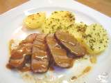 Magret de pato con patatas PlatoFácil35 min Enviar esta receta a un amigo Imprimir esta página Preguntar al autor Publicar la foto de esta receta Ingredientes 2 Pato, pechuga o magret: 2 unidad(es) Vino tinto: 1 taza(s) Vino dulce: 1 taza(s) Vinagre: 2 cucharada(s) Pimienta negra: 1 cucharadita(s) Sal: 2 cucharadita(s) Fruta de la pasión o maracuyá: 100 g Zumo de limón: 1 unidad(es) Azúcar, granulada: 30 g Patatas: 250 g Cebolla blanca: 1 unidad(es) Manzanas: 1 unidad(es) Aceite de oliva: 8 cucharada(s) Perejil seco: 1 cucharadita(s) Romero seco: 1 pizca