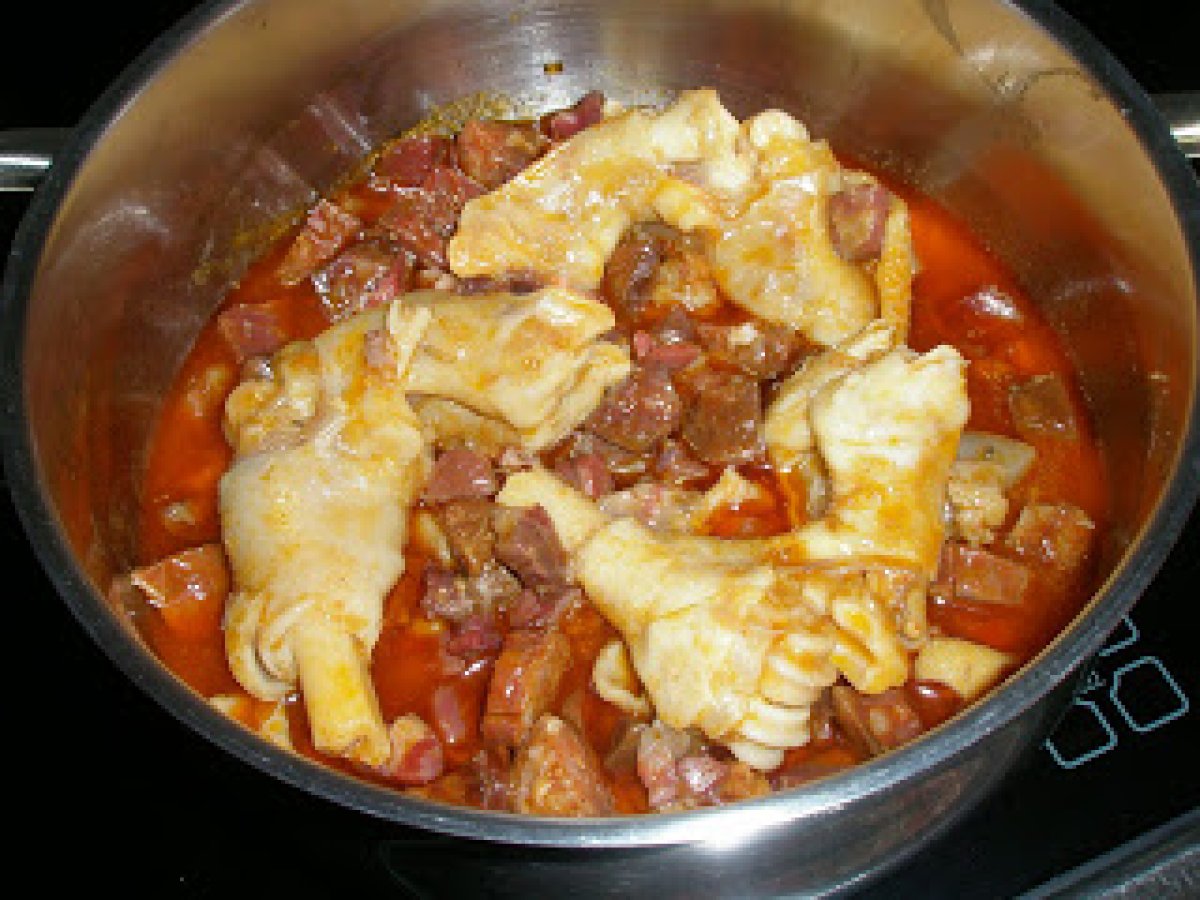 Manitas de cordero PlatoFácil55 min Enviar esta receta a un amigo Imprimir esta página Preguntar al autor Publicar la foto de esta receta Ingredientes 3 1 kg de manitas de cordero ya limpias 100 g de jamon serrano a tacos 75 g de chorizo dulce para cocinar 75 g de chorizo picante para cocinar 2 cebollas 1 hueso de jamon Tres cucharadas de tomate natural triturado 4 ó 5 bolitas de pimienta 1 hoja de laurel pequeña 1 cabeza de ajos Una cucharadita pequeña de pimentón dulce Una pimienta cayena