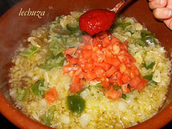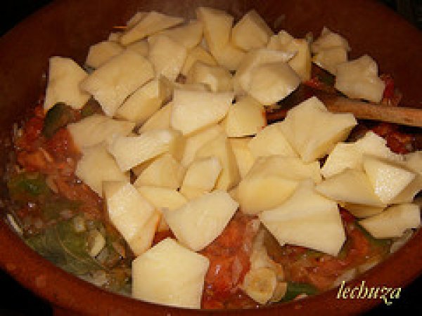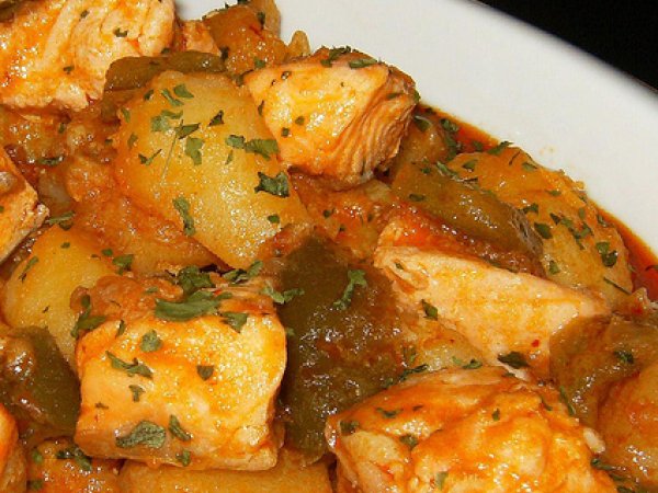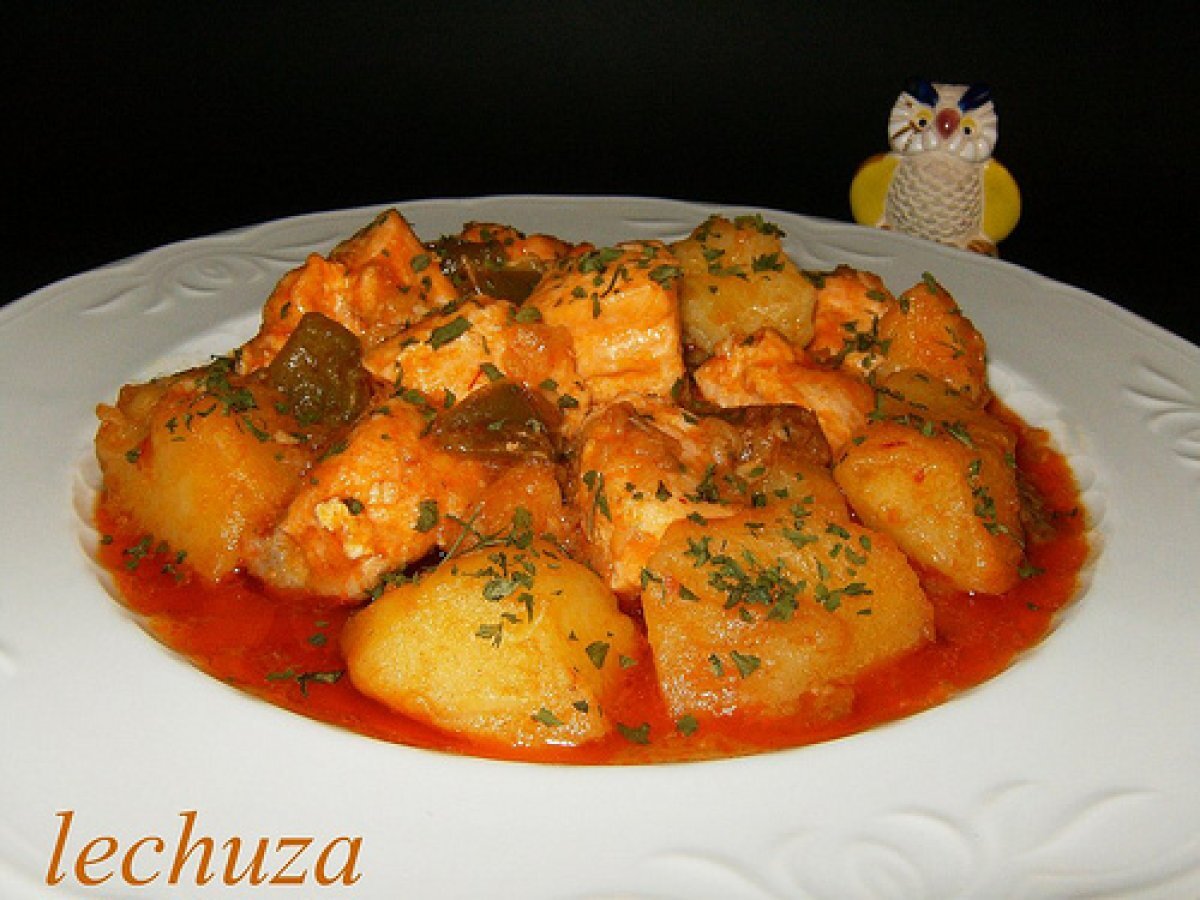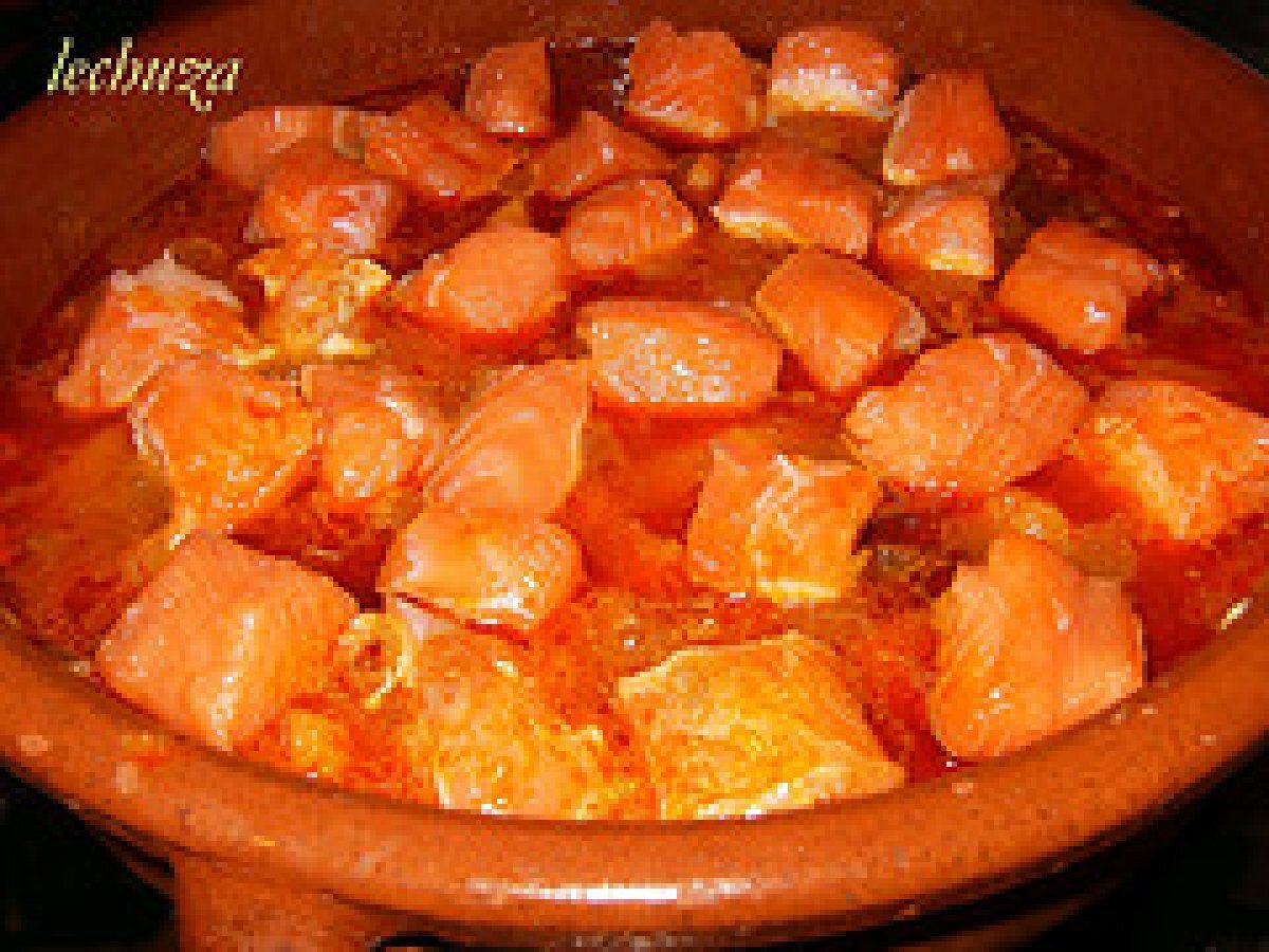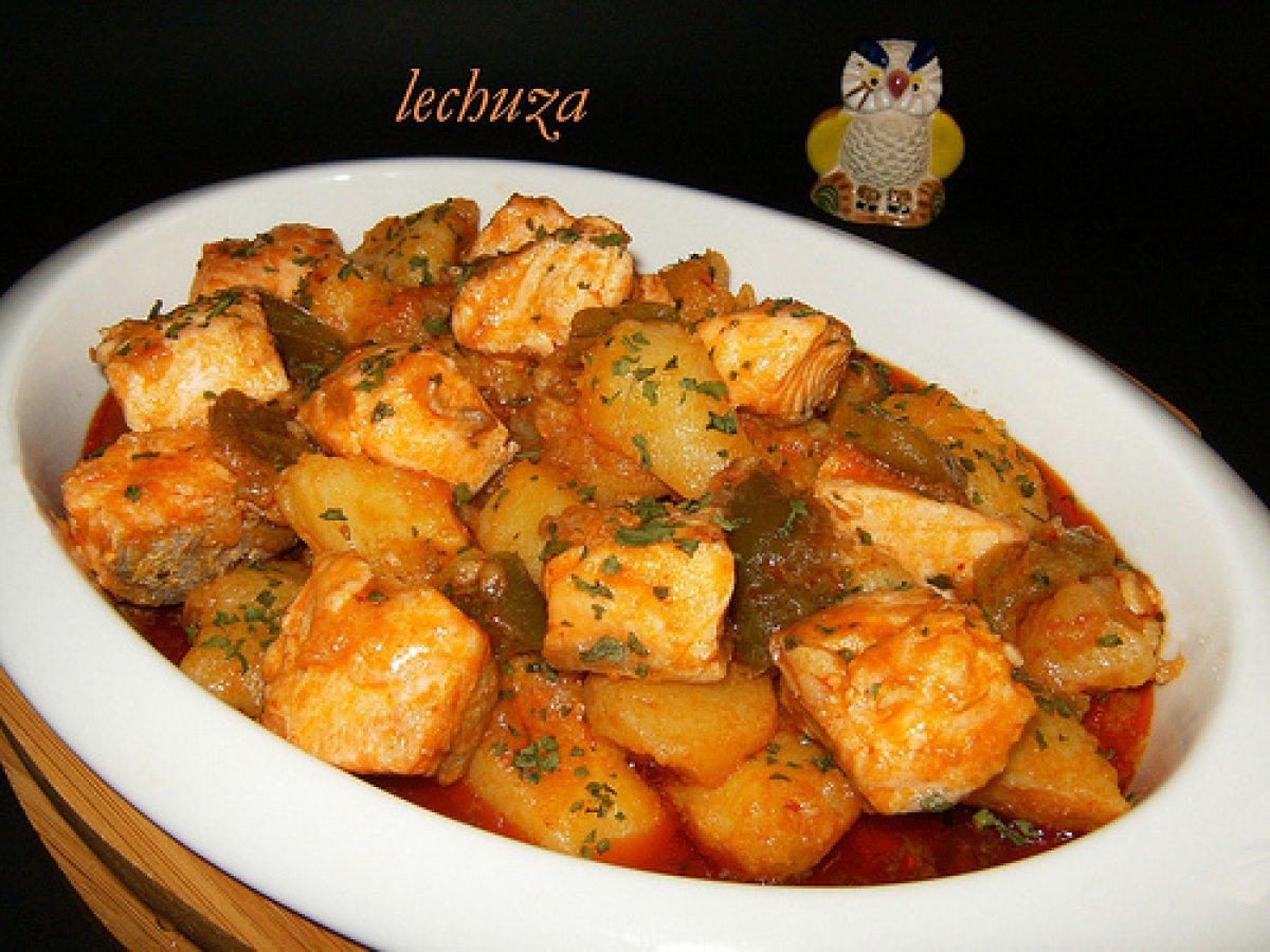 Marmitako de salmón AnteriorSiguiente PlatoFácil25 min Enviar esta receta a un amigo Imprimir esta página Preguntar al autor Publicar la foto de esta receta Intentar preparar un ingreso rico para los niños. Ingredientes 3 1 cola de salmón de 600 grs. cortada en tacos 1 lt. de caldo de pescado 1/2 pimiento verde 1 tomate picado 1 cucharada de carne de pimiento choricero 3 patatas grandes 2 dientes de ajo 1 cebolla mediana 1 hoja de laurel