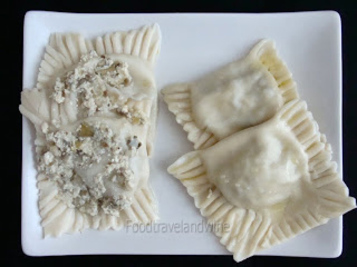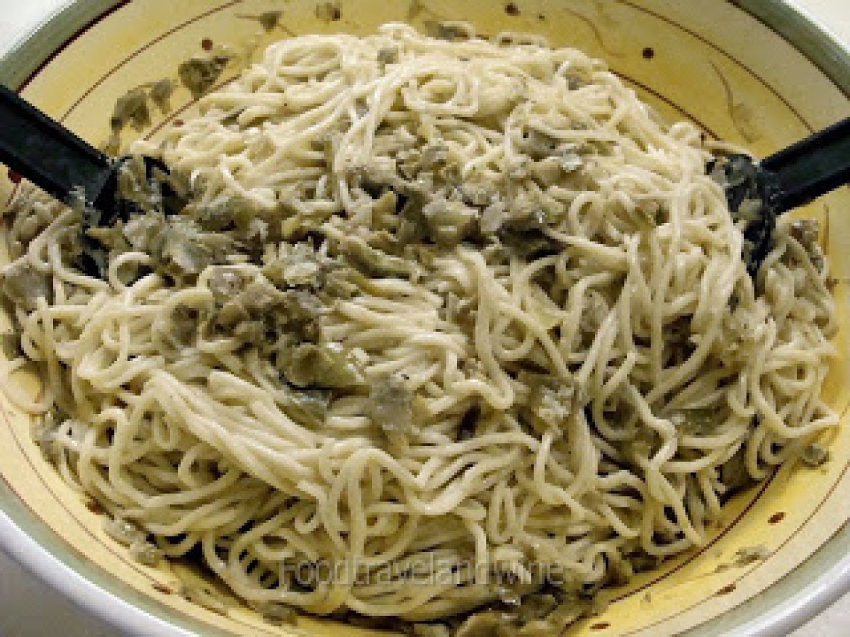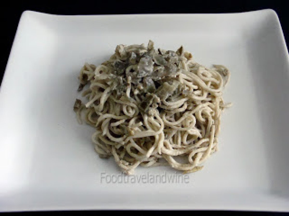 Mas alcachofas.....ravioles de alcachofas....y salsa de alcachofas para los fideos AnteriorSiguiente PlatoFácil30 min Enviar esta receta a un amigo Imprimir esta página Preguntar al autor Publicar la foto de esta receta Ingredientes 4 Relleno: 8 alcachofas pequeñas 3 o 4 dientes de ajo El aceite de oliva Sal Pimienta Nuez moscada Mejorana 1 huevo 1 taza de queso rallado parmesano reggiano (o más para hacer un relleno seco)