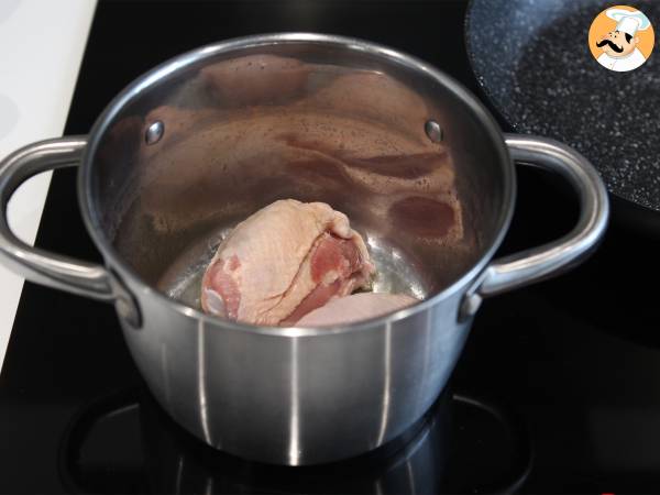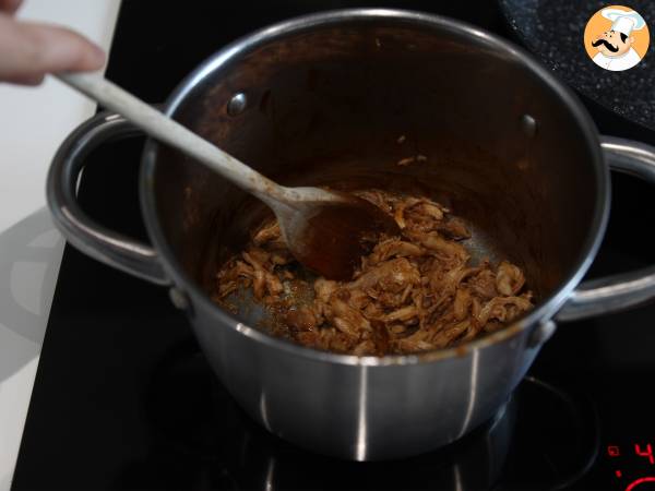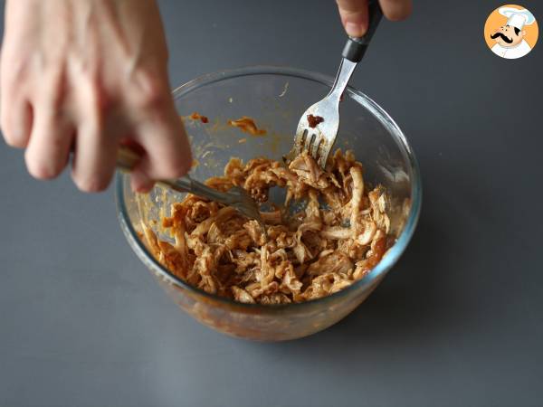 Una vez cocido, desmenuzar el pollo con un tenedor.