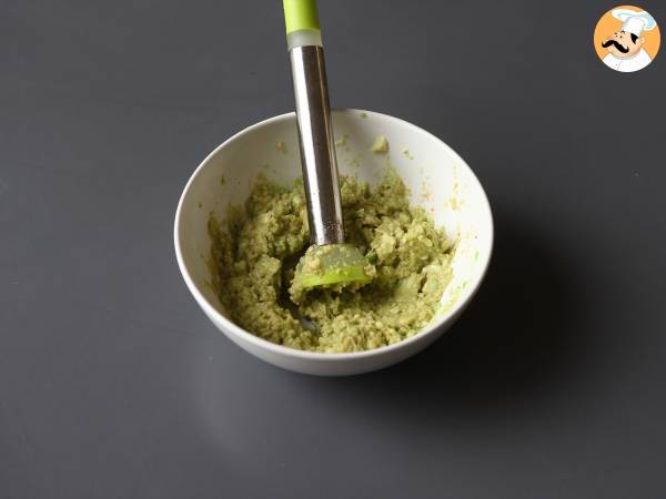 Triturar el aguacate con pimentón, sal, pimienta y un poco de zumo de lima. Mezclar bien.