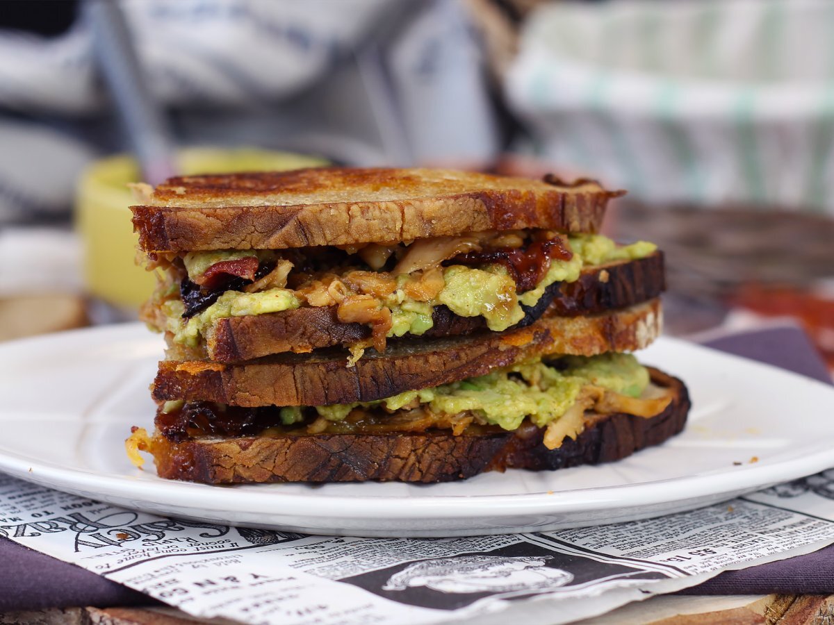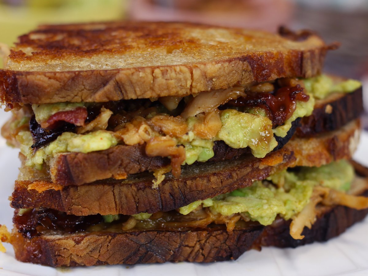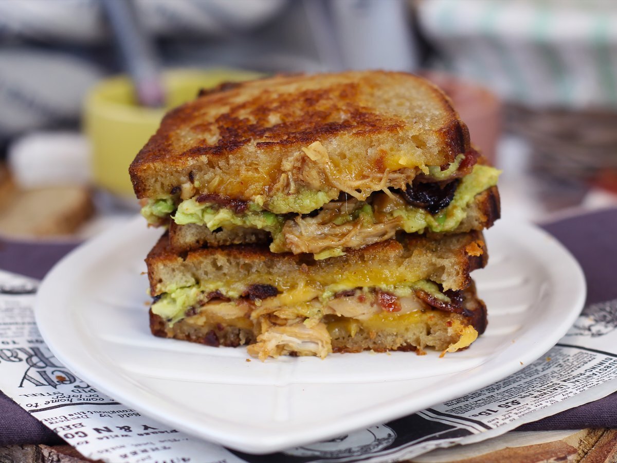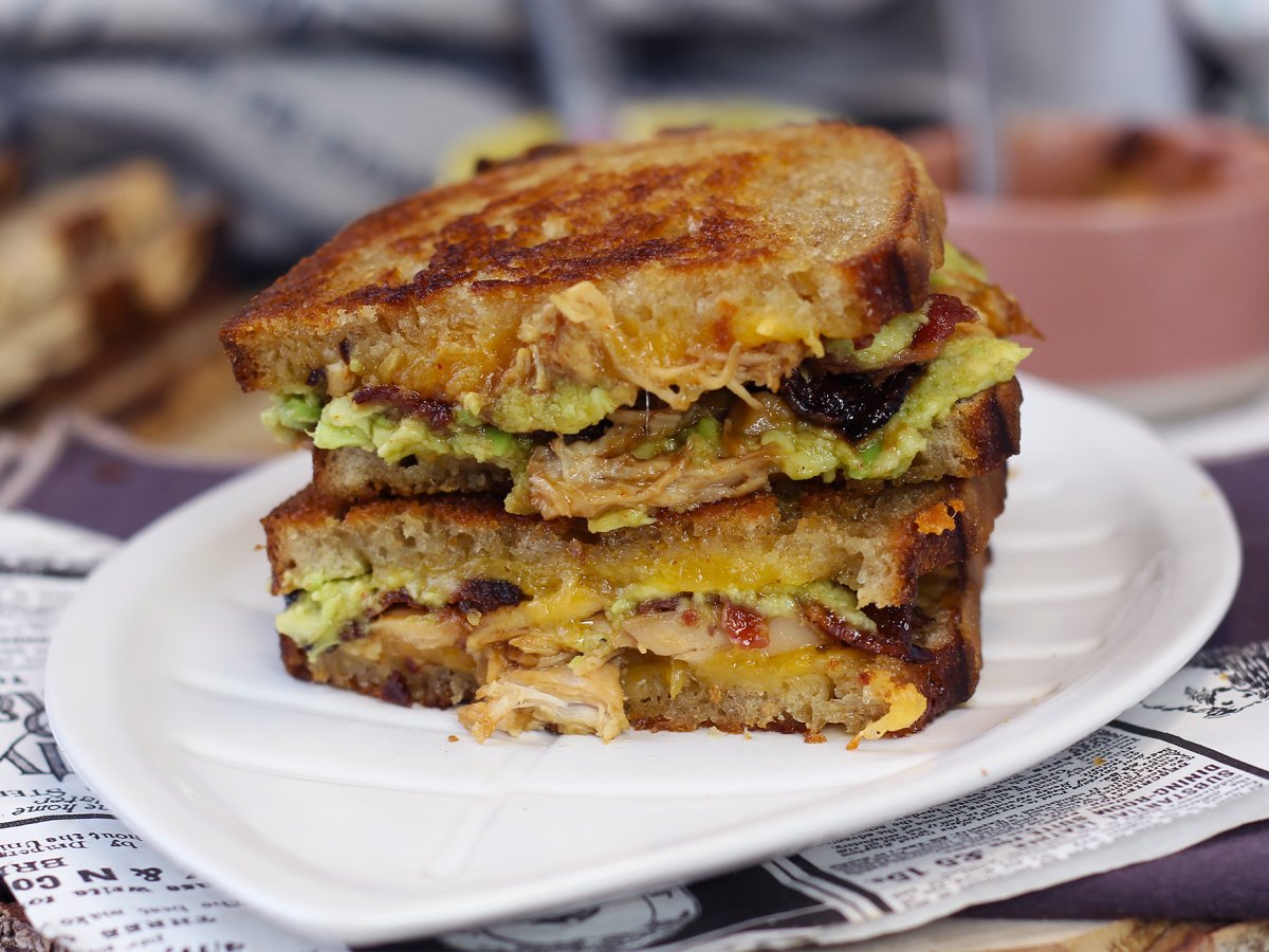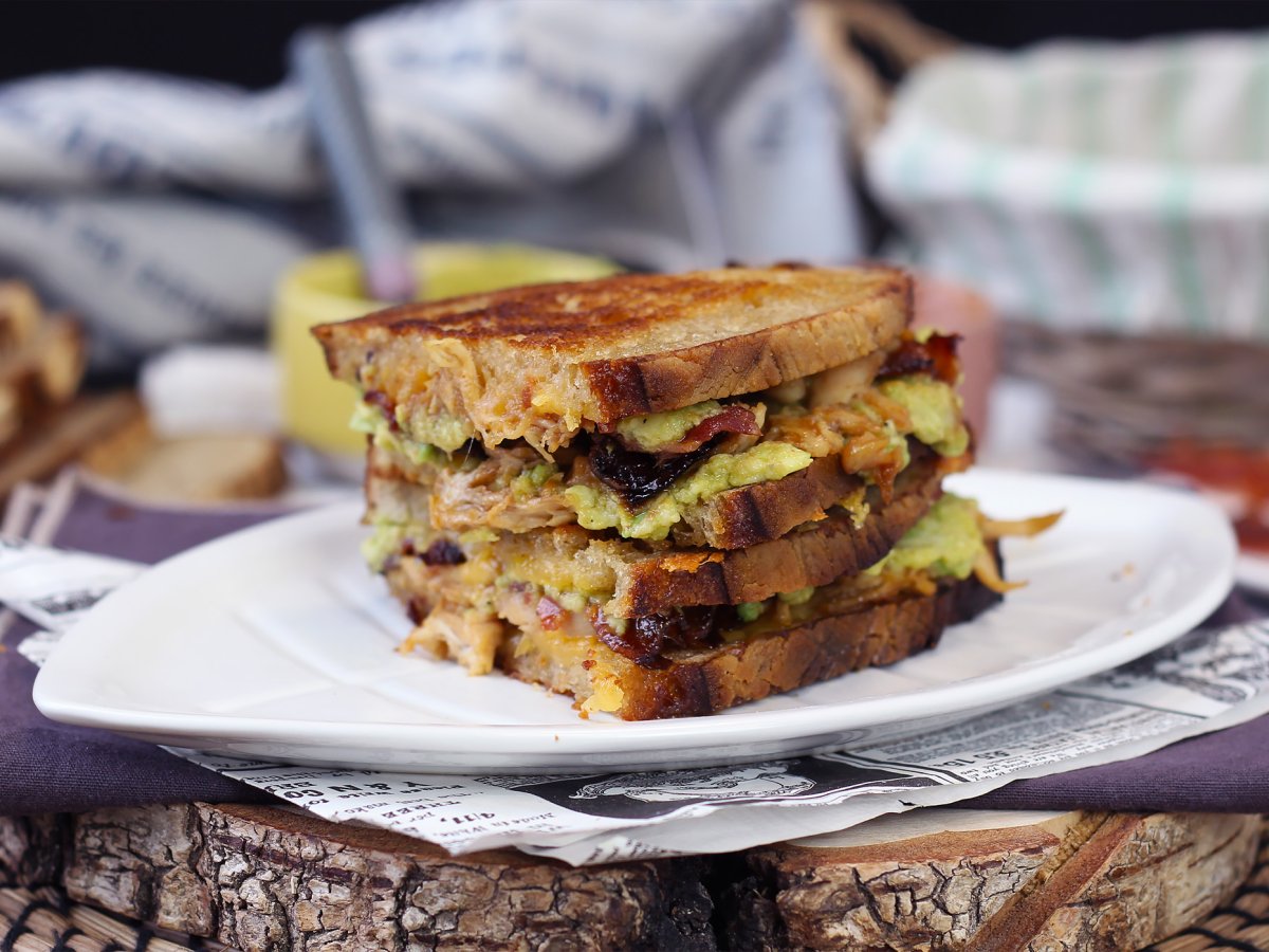 Maxi sándwich de queso estilo americano: pollo, guacamole y bacon