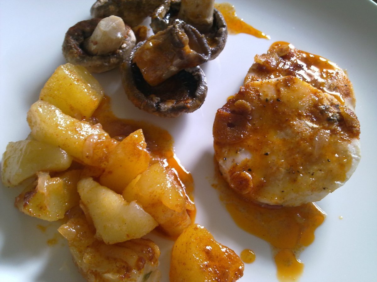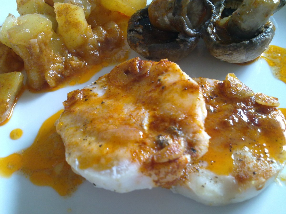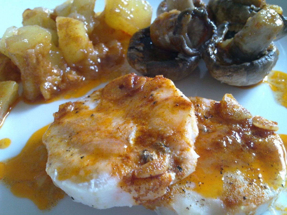 Medallones de merluza con guarnición AnteriorSiguiente PlatoMedio30 min358 Kcal Enviar esta receta a un amigo Imprimir esta página Preguntar al autor Publicar la foto de esta receta Ingredientes 2 4 medallones de merluza. champiñones (a gusto). 2 patatas medianas. 3 dientes de ajo. 1 cebolla. Pimentón dulce (dos cucharaditas). 1 hoja de laurel. Aceite. Sal. Costo estimado: 7.35Euros€ (3.68€/porción)