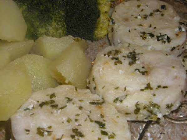 Medallones de merluza con patatas y brócoli.