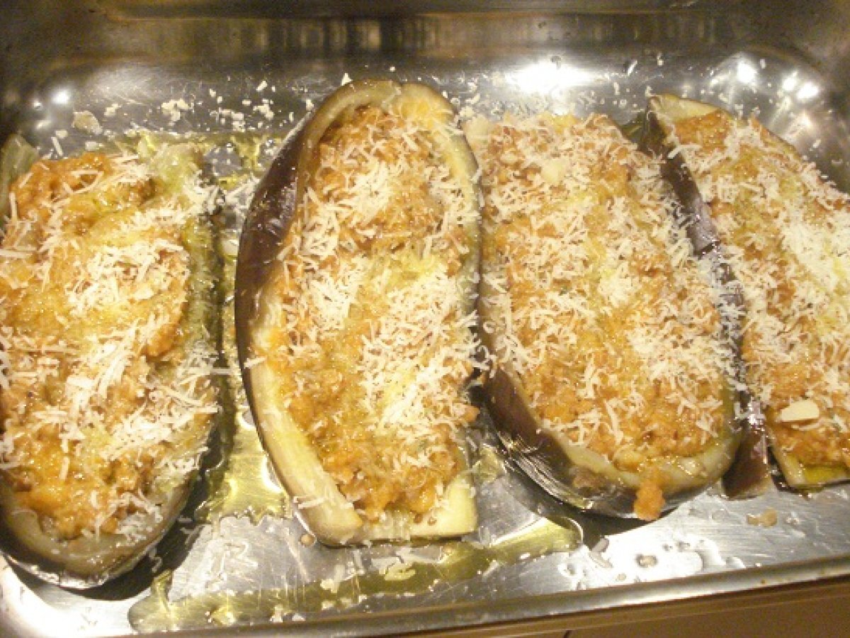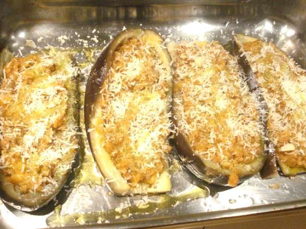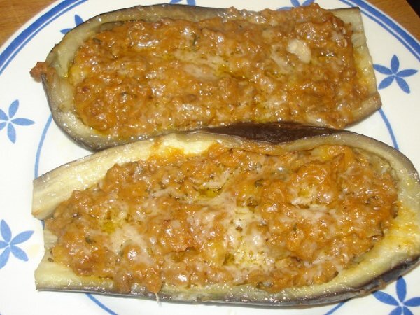 Berenjenas rellenas de patatas AnteriorSiguiente PlatoFácil40 min444 Kcal Enviar esta receta a un amigo Imprimir esta página Preguntar al autor Publicar la foto de esta receta Ingredientes 2 2 berenjenas 2 patatas 150 g de carne picada 1 diente de ajo 1/4 de cebolla perejil caldo aceite sal parmesano y pimienta Costo estimado: 3.31Euros€ (1.66€/porción)