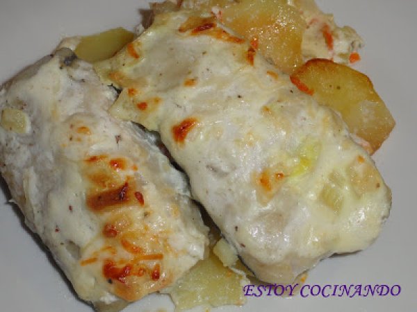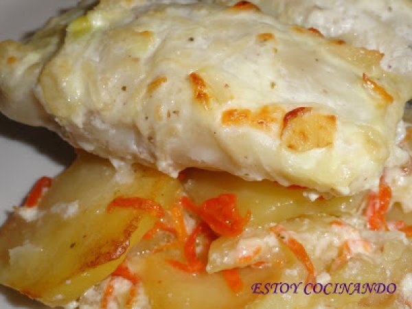 Merluza a la crema AnteriorSiguiente PlatoFácil35 min875 Kcal Enviar esta receta a un amigo Imprimir esta página Preguntar al autor Publicar la foto de esta receta Ingredientes 1 lomos de merluza 200 ml de nata 2 patatas medianas 100 g zanahoria rallada 1 cebolla 25 g de mantequilla 1 diente de ajo 2 cucharadas de queso parmesano rallado sal pimienta aceite oliva Costo estimado: 3.73Euros€ (3.73€/porción)