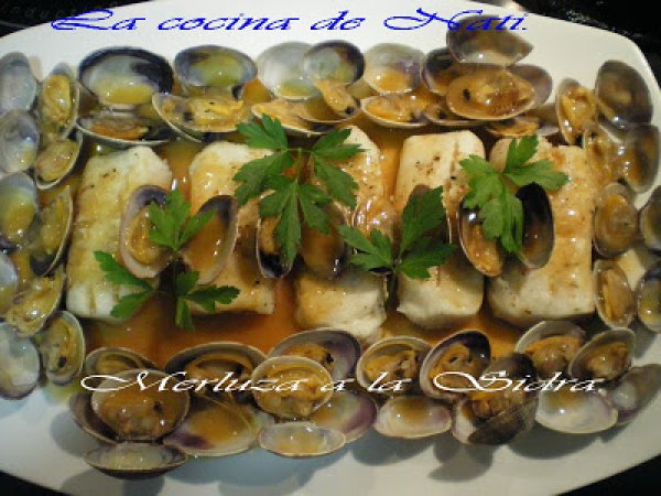 Merluza a la sidra. PlatoMedio50 min411 Kcal Enviar esta receta a un amigo Imprimir esta página Preguntar al autor Publicar la foto de esta receta Ingredientes 4 8 lomos de merluza. 1 cebolla. 2 cucharadas de salsa de tomate. 2 vasos de sidra. 500 g de almejas. 3 cucharadas de aceite de oliva. Sal, pimienta 1 cucharada de harina.