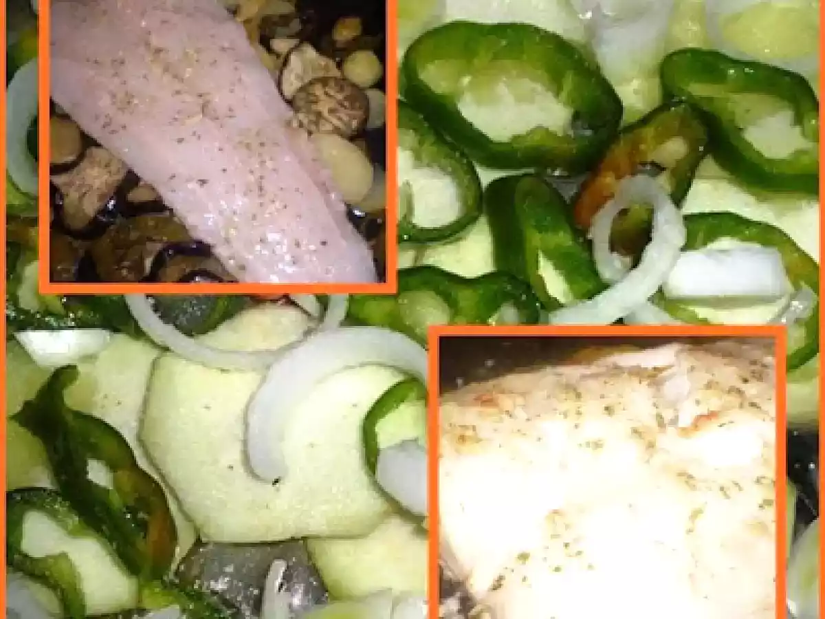 Merluza al horno en lecho de verduras PlatoFácil22 min326 Kcal Enviar esta receta a un amigo Imprimir esta página Preguntar al autor Publicar la foto de esta receta Ingredientes 2 1/2 Cola de Merluza sin raspa ni piel. 1 pimiento verde 1 berenjena 2 puerros 1 Patata 2 ajos 1 cucharita de perejil 1 vasito de vino blanco 2 chorritos de aceite sal Costo estimado: 3.17Euros€ (1.58€/porción)