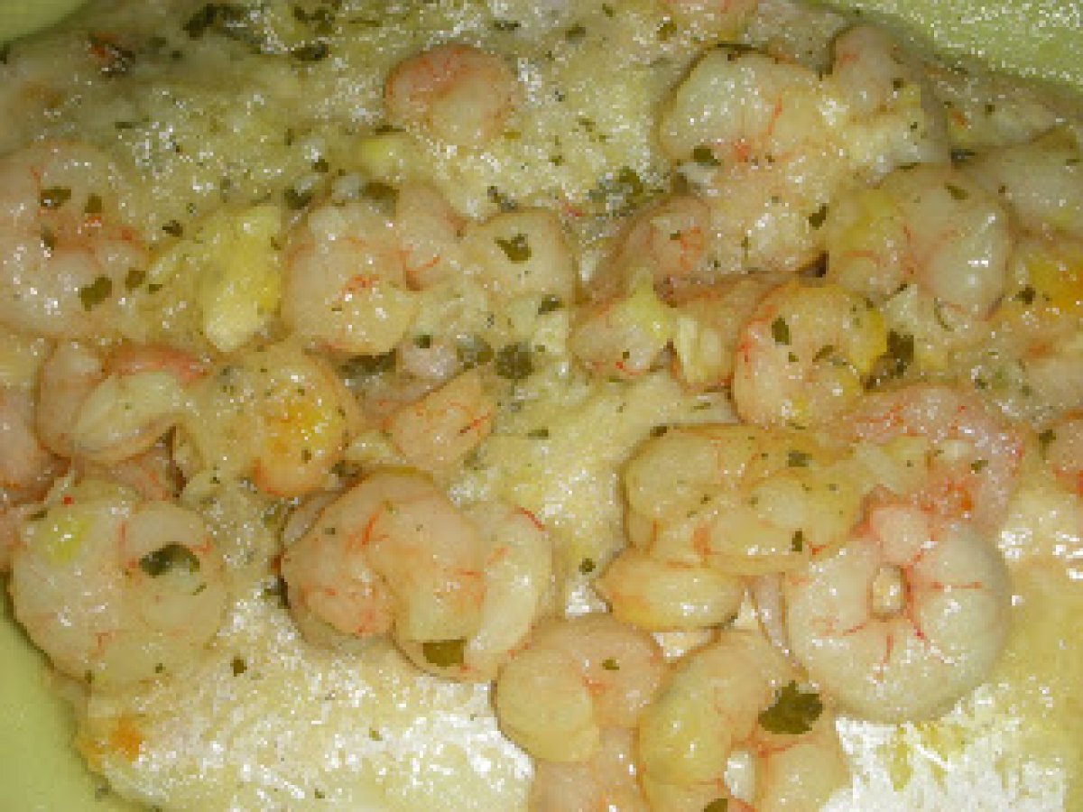 Merluza con salsa y gambas PlatoFácil35 min Enviar esta receta a un amigo Imprimir esta página Preguntar al autor Publicar la foto de esta receta Ingredientes 4 4 filetes de merluza sin piel ni espinas Un buen puñado de gambitas peladas 4 dientes bien gordos de ajo 1/2 bolsita hojas de perejil 1 guindilla cayena abierta 1 puerro delgadillo 50 g de aceite 100 g de agua 75 g de vino blanco Azafrán Sal y pimienta 1/2 pastillita de caldo de pescado o sal