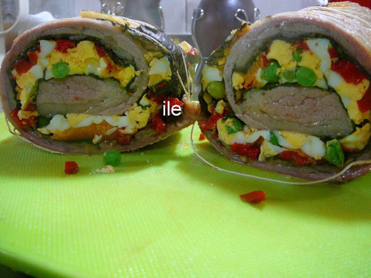Mi matambre relleno a la leche AnteriorSiguiente PlatoFácil30 min Enviar esta receta a un amigo Imprimir esta página Preguntar al autor Publicar la foto de esta receta Ingredientes 2 1 matambre de novillo 2 zanahorias 1 morrón o pimiento rojo hojas de espinacas cantidad necesaria 3 dientes de ajo sal y pimienta negra a gusto 1 taza de arveja congeladas 2 o 3 huevos duros orégano seco a gusto 1 litro de leche