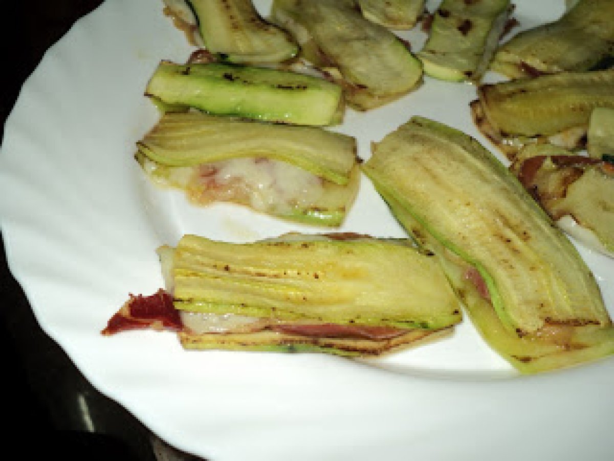 Montaditos de calabacín. AnteriorSiguiente PlatoFácil20 min293 Kcal Enviar esta receta a un amigo Imprimir esta página Preguntar al autor Publicar la foto de esta receta Ingredientes 1 Calabacín Jamón Queso Semicurado Aceite sal y pimienta Costo estimado: 2.17Euros€ (2.17€/porción)