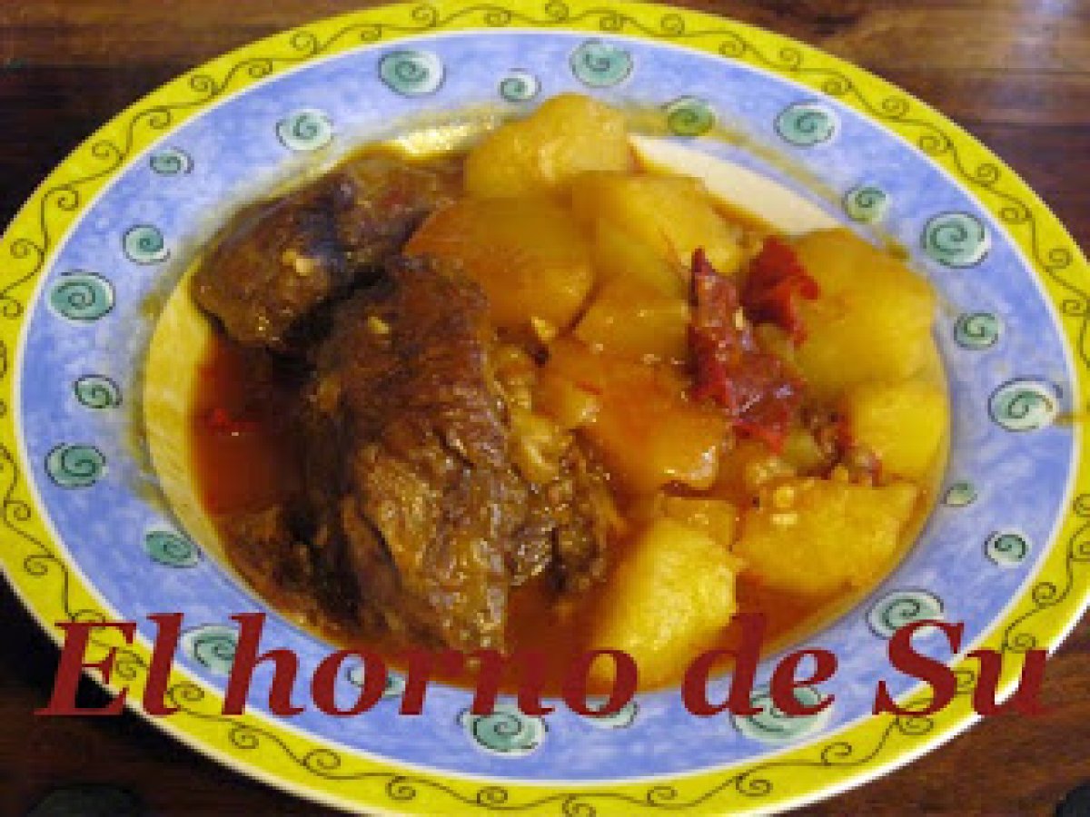 Morcillo de ternera guisado con patatas PlatoFácil1 h 10 m Enviar esta receta a un amigo Imprimir esta página Preguntar al autor Publicar la foto de esta receta Ingredientes 2 una pieza de 1morcillo de ternera 2 pimientos choriceros 1/2 l de agua templada 3 dientes de ajo 1 cebolla salsa de tomate 100 g de patata por comensal aceite de oliva sal