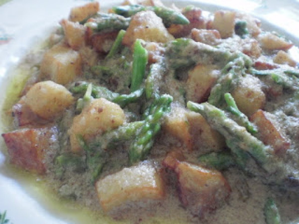 Las patatas y los espárragos trigueros se combinan magistralmente en esta receta.