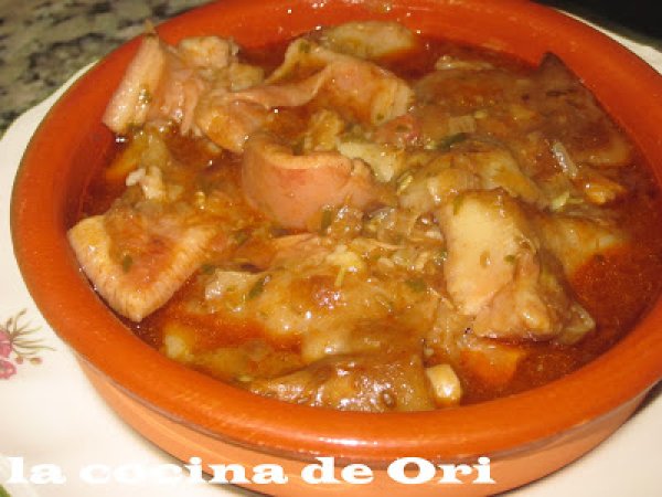 Morros y pata de cerdo en salsa bejarana PlatoFácil30 min Enviar esta receta a un amigo Imprimir esta página Preguntar al autor Publicar la foto de esta receta Ingredientes 2 2 manos de cerdo cortadas en cuatro trozos 1/2 careta de cerdo (morros de cerdo) 2 hojas de laurel oregano pimenton ajos machacados 1/2 vaso de vino blanco 1 cebolla perejil cominos harina guindilla(esto es de mi aportación) aceite de oliva virgen extra