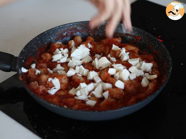 Hoy nos vamos a Italia con una deliciosa, ultrasuave y reconfortante receta: ¡Gnocchi alla sorrentina! Esta receta vegetariana suele cocinarse en forma de gratinado al horno, pero hemos ideado una versión superfácil que puede hacerse en una sartén y con pocos ingredientes: salsa de tomate, mozzarella y deliciosos ñoquis. ¿Te apetece? ¡Pues, manos a la obra! :-)