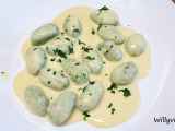 Ñoquis de espinaca rellenos AnteriorSiguiente PlatoMedio32 min377 Kcal Enviar esta receta a un amigo Imprimir esta página Preguntar al autor Publicar la foto de esta receta Ingredientes 4 300 grs de espinacas 4 patatas medianas sal perejil harina Queso a eleccion personal Salsa a eleccion personal 1 huevo Costo estimado: 2.19Euros€ (0.55€/porción)