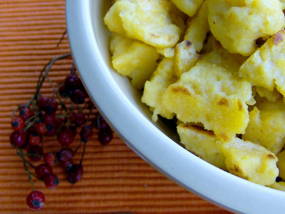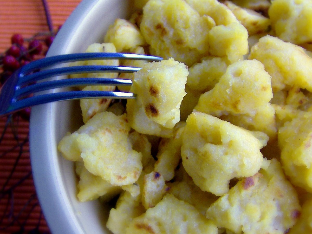 - Al momento de servir, se calienta la mantequilla y se agregan los ñoquis ( klösses duros :D) picaditos, se dejan dorar y ya están listos.Y aunque parezcan coles rebozadas no lo son, lo que si es que están muy ricos.