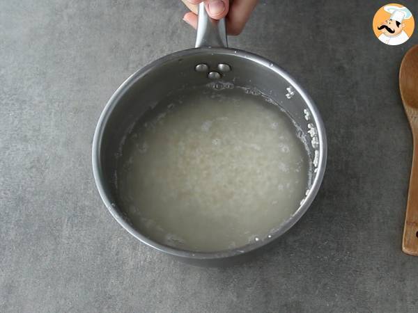Utiliza el arroz japonés que se usa para el sushi. El arroz no debe tener vinagre añadido y debe estar aún caliente cuando haga las bolas de masa.