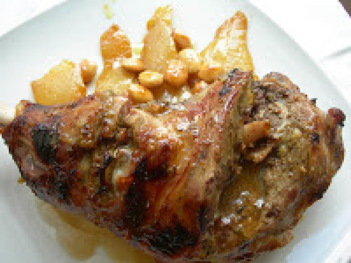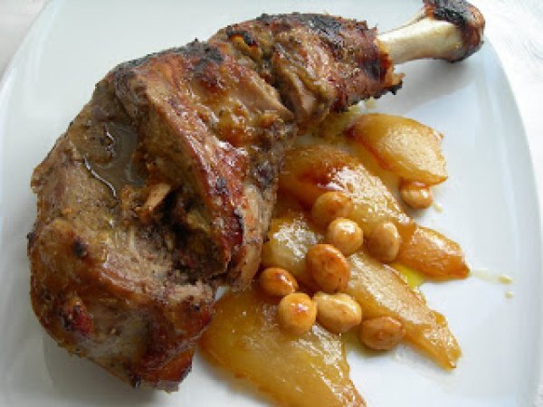 Paletilla de cordero con peras. paso a paso vota ahora AnteriorSiguiente PlatoMedio45 min2532 Kcal Enviar esta receta a un amigo Imprimir esta página Preguntar al autor Publicar la foto de esta receta Brillante de gusto y de perfume! Ingredientes 1 1 paletilla de cordero segureño 1 vasito de vino blanco 1/2 cucharadita de Pimienta negra 1 cucharadita Romero 1 cucharadita Tomillo 4 dientes de ajo 1 cucharada de miel Aceite de oliva virgen extra Sal 3 peras conferencia (no eran muy grandes) 1 puñado de almendras 1 cucharada de azúcar