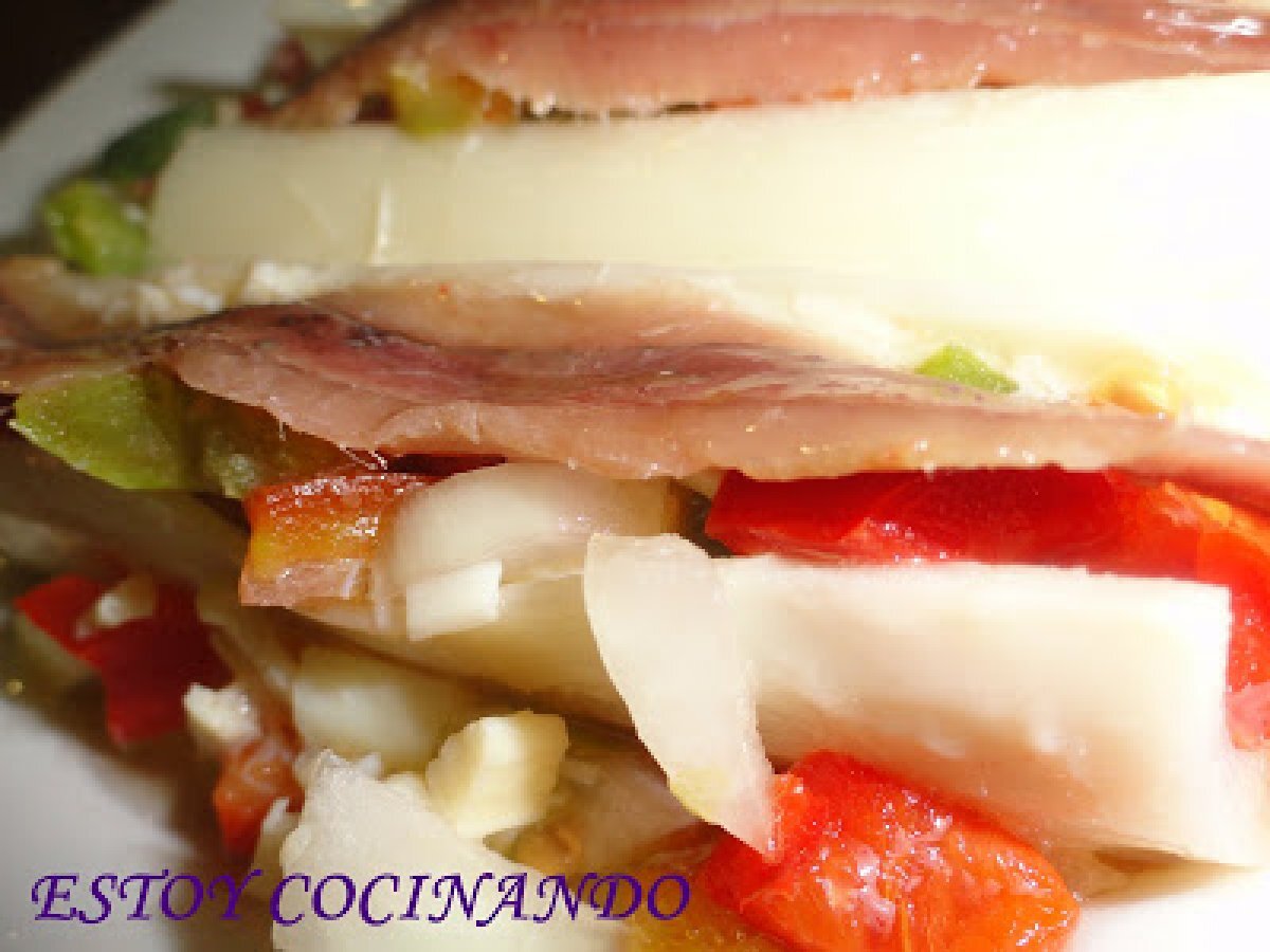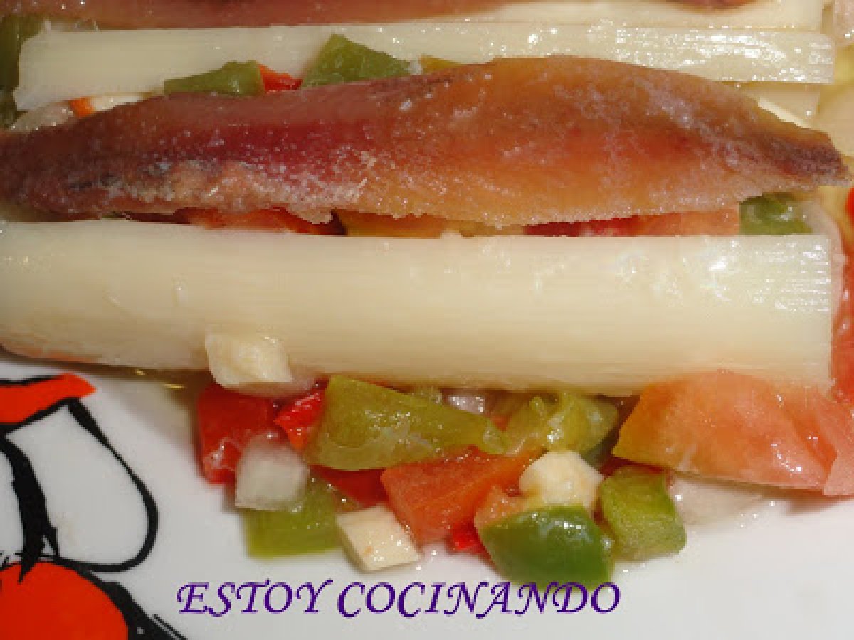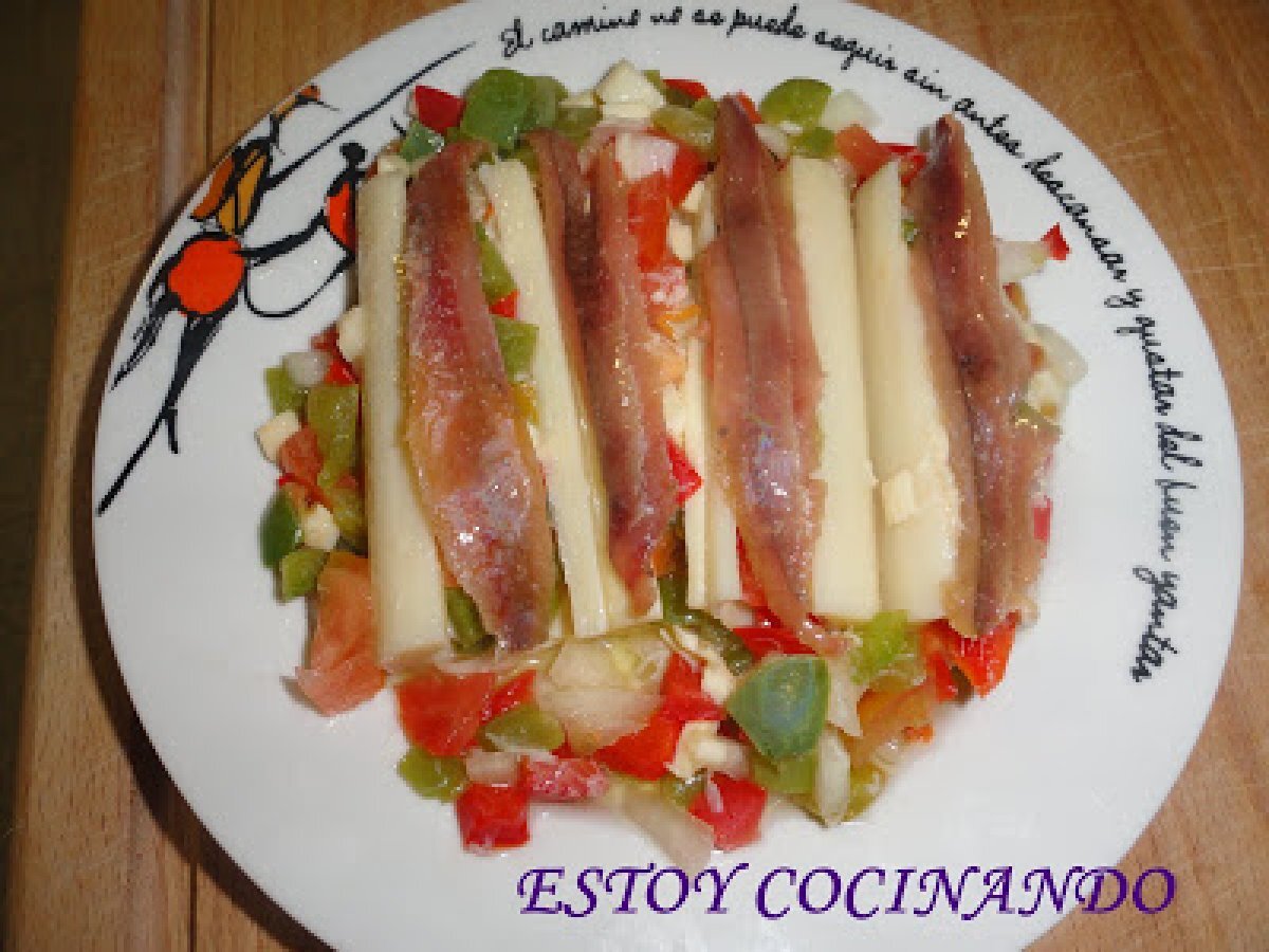 Palmitos en vinagreta de verduras AnteriorSiguiente PlatoFácil50 min Enviar esta receta a un amigo Imprimir esta página Preguntar al autor Publicar la foto de esta receta Ingredientes 6 1 bote de palmitos 1 tomate 1 pimiento verde 1 pimiento rojo 1 cebolla 1 lata de anchoas en aceite aceite vinagre sal