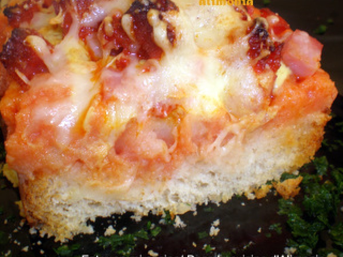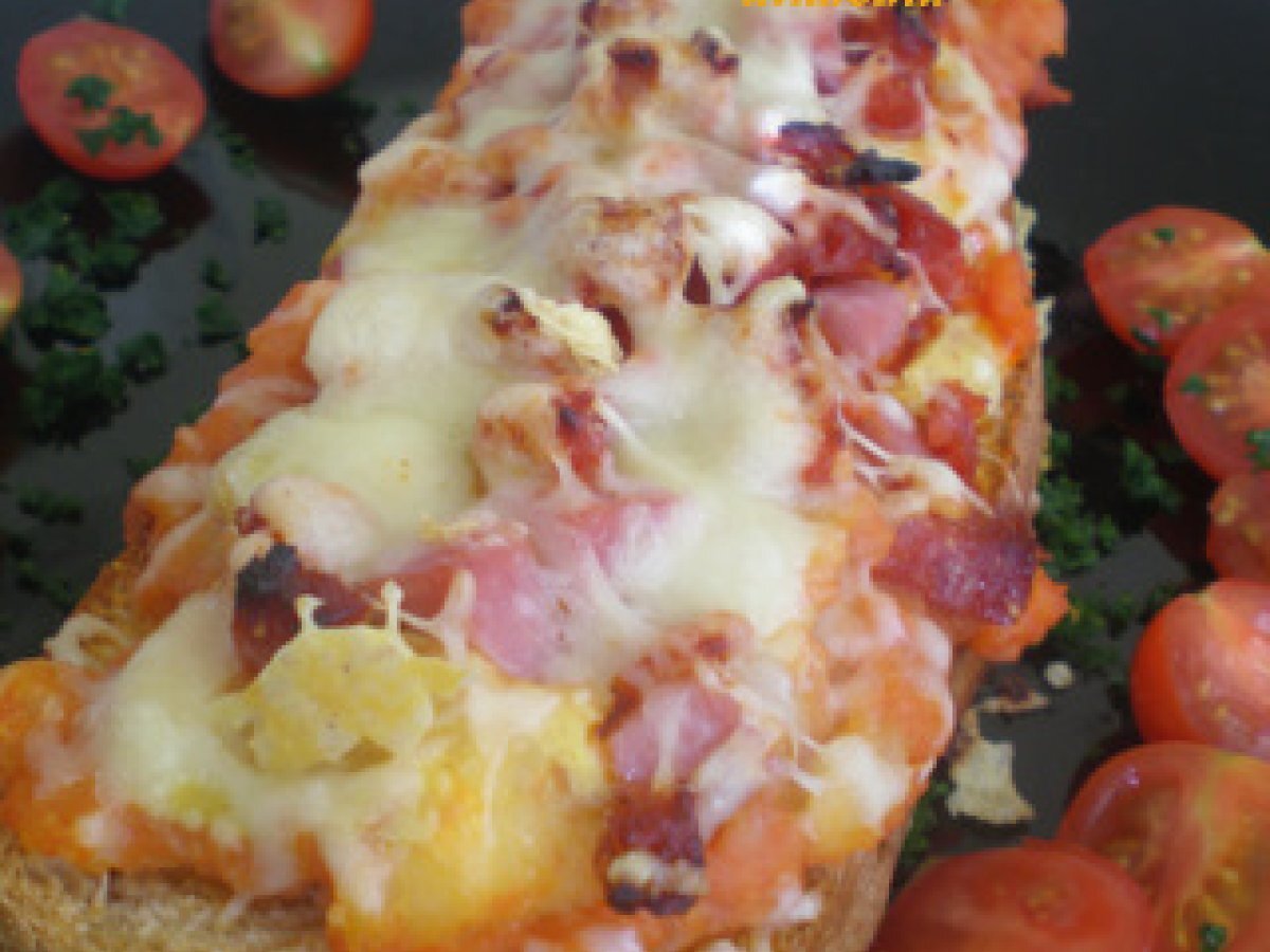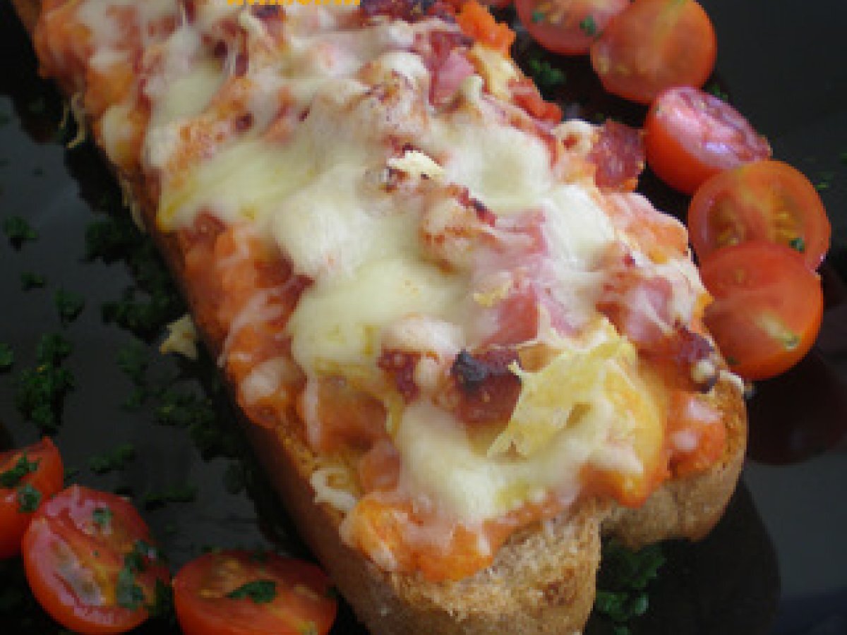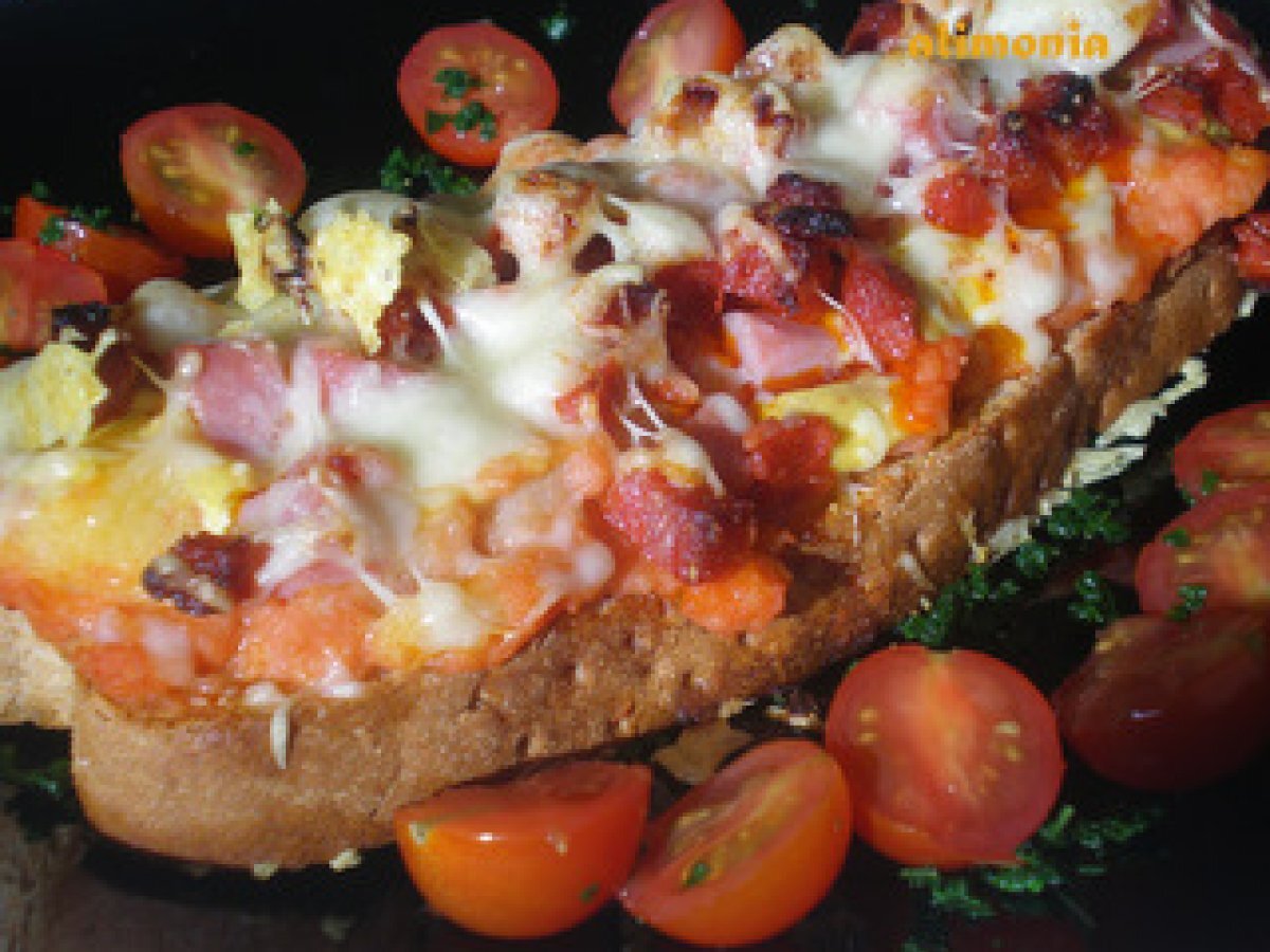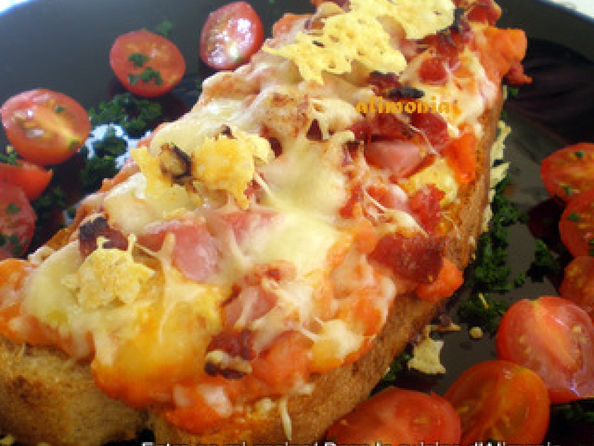 - Untar las lonchas de pan generosamente con esa mezcla.Distribuir encima de cada una los dados de jamon y de chorizo.